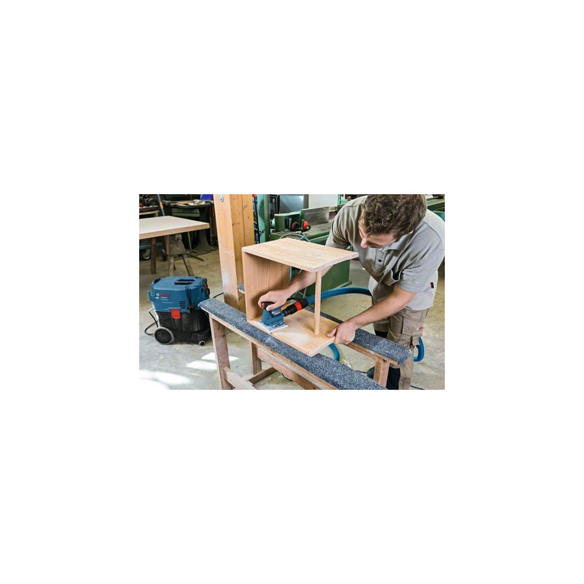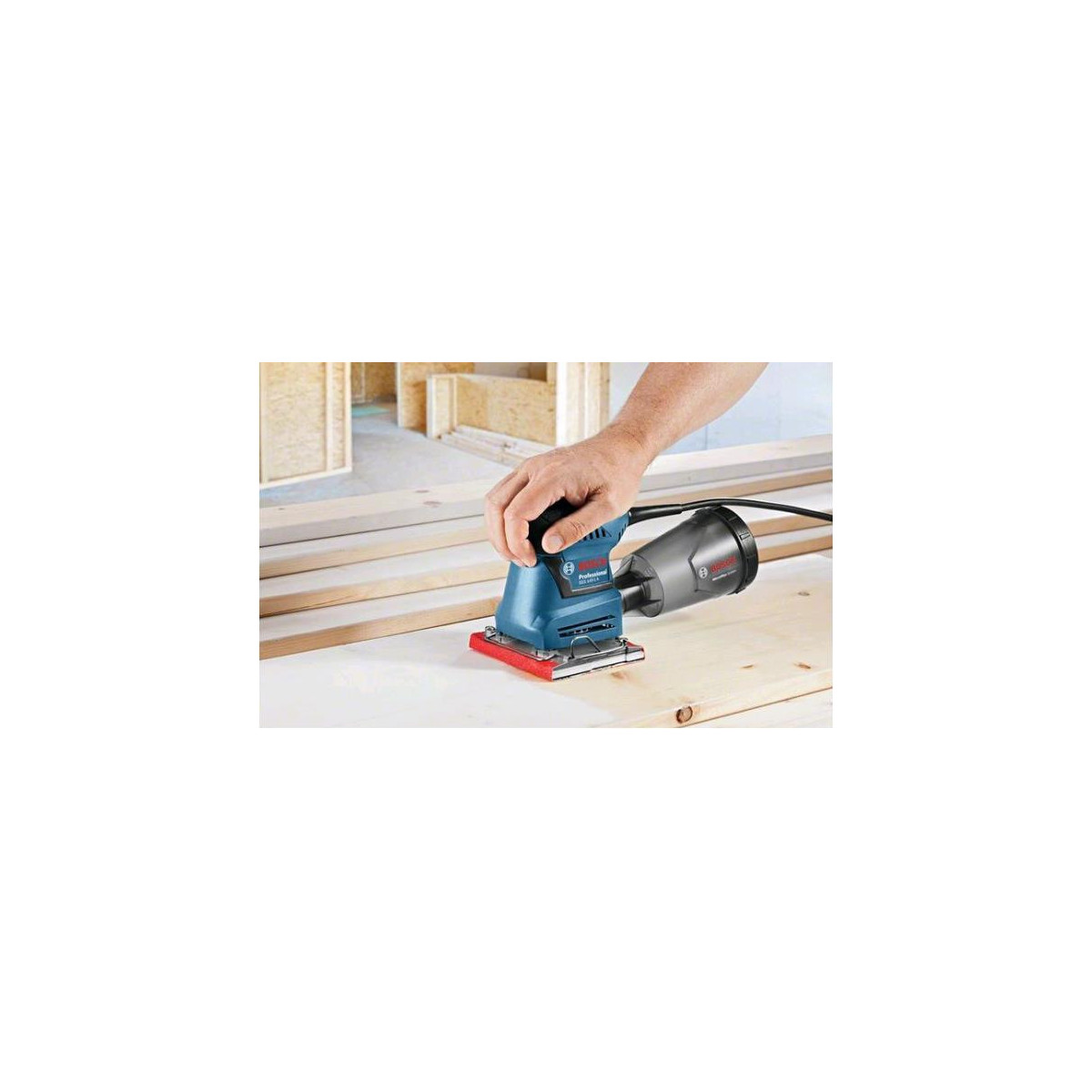 La GSS 140-1 A Professional è la compatta ed ergonomica levigatrice orbitale a filo Bosch con resistente sistema di fissaggio per piccole superfici. Questo compatto utensile è dotato di un appoggio palmare ergonomico, per un impiego semplice e pratico. La piastra in metallo garantisce la robustezza necessaria per gli impieghi prolungati. Il platorello in espanso con fissaggio a strappo è concepito per un’agevole sostituzione del foglio abrasivo.