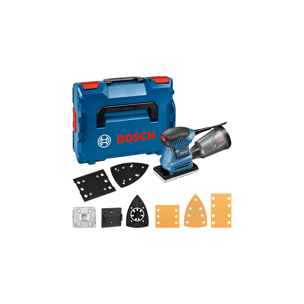 Bosch GSS 160-1 A Multi - Levigatrice Orbitale 180W, Piastra Base + Delta, 3 Carte Abrasive, Piastra Forcarta, L-Boxx