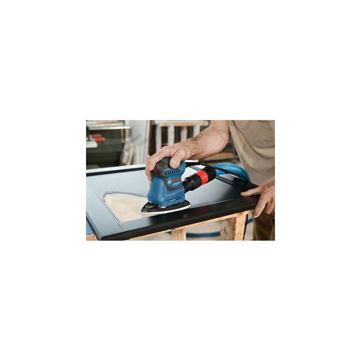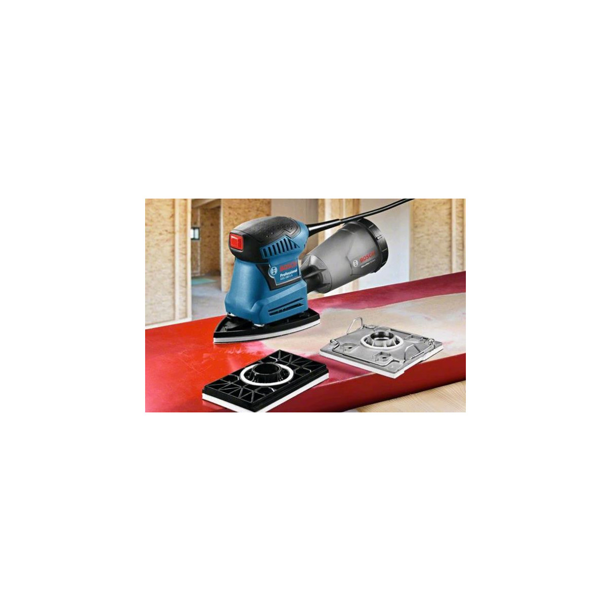 La dotazione della GSS 160 Professional Multi comprende inoltre un sistema di fissaggio a strappo per il foglio abrasivo; concepita per l’impiego con una sola mano.