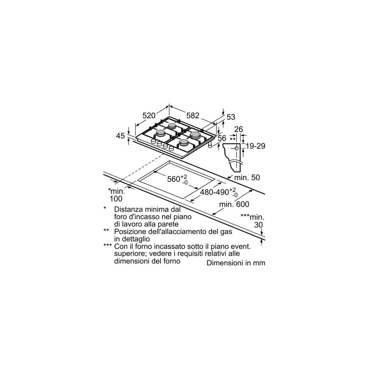 Bosch PGP6B6B80 - Piano Cottura a Gas, 4 Fuochi, 60 cm