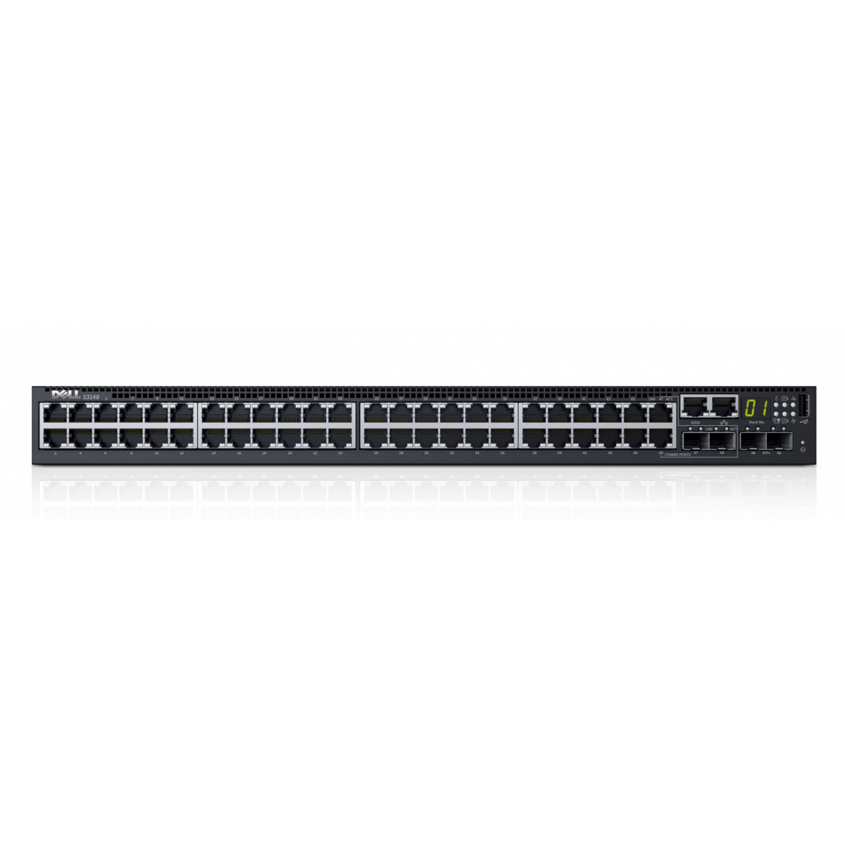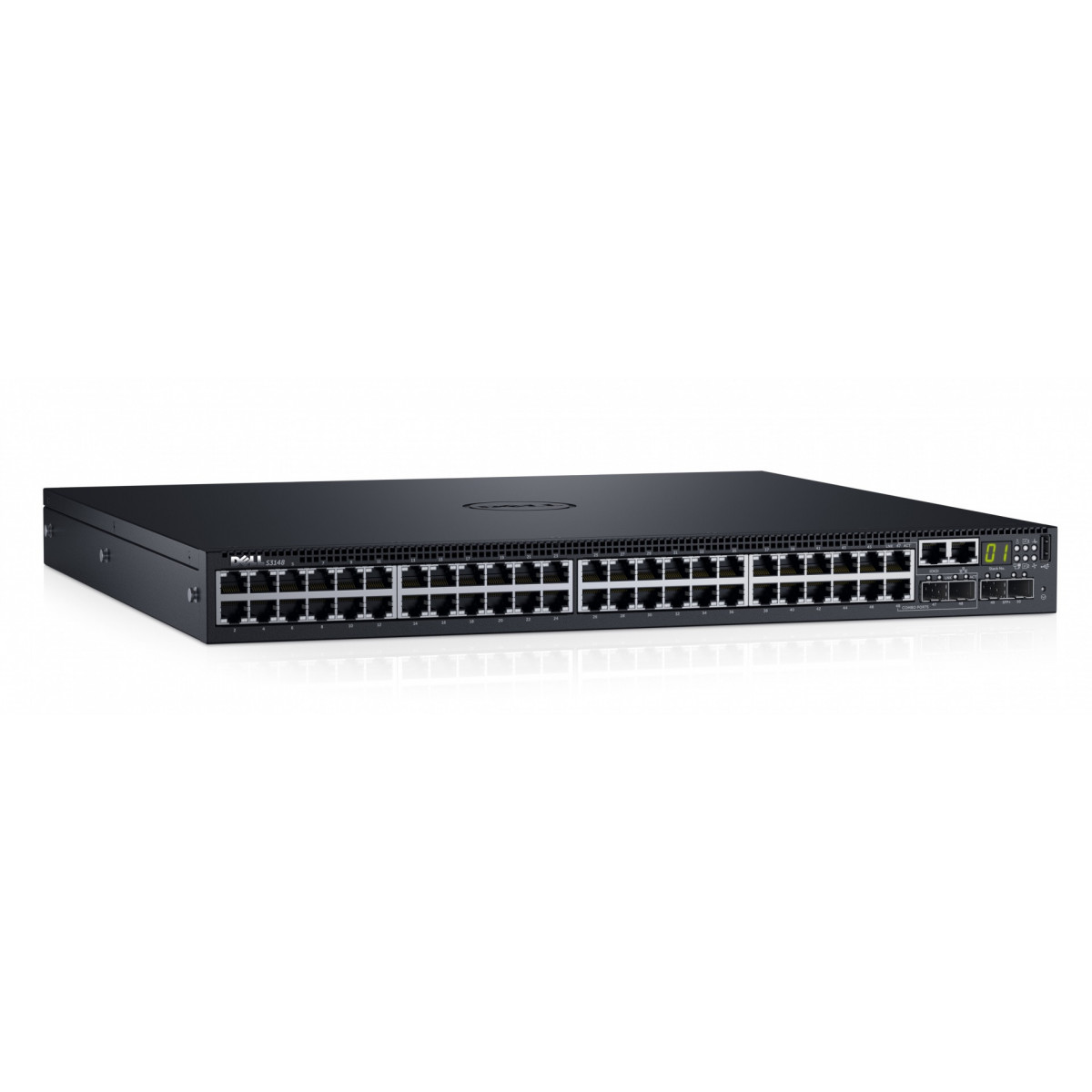 DELL S-Series S3148T. Tipo interruttore: Gestito, Livello del commutatore: L2/L3. Tipo di porte RJ-45: Nessuno, Quantità di moduli SFP+ installati: 48. Standard di rete: IEEE 802.1D,IEEE 802.1Q,IEEE 802.1Qau,IEEE 802.1Qaz,IEEE 802.1Qbb,IEEE 802.1ab,IEEE 802.1p. Supporto Power over Ethernet (PoE). Montaggio rack, Fattore di forma: 1U