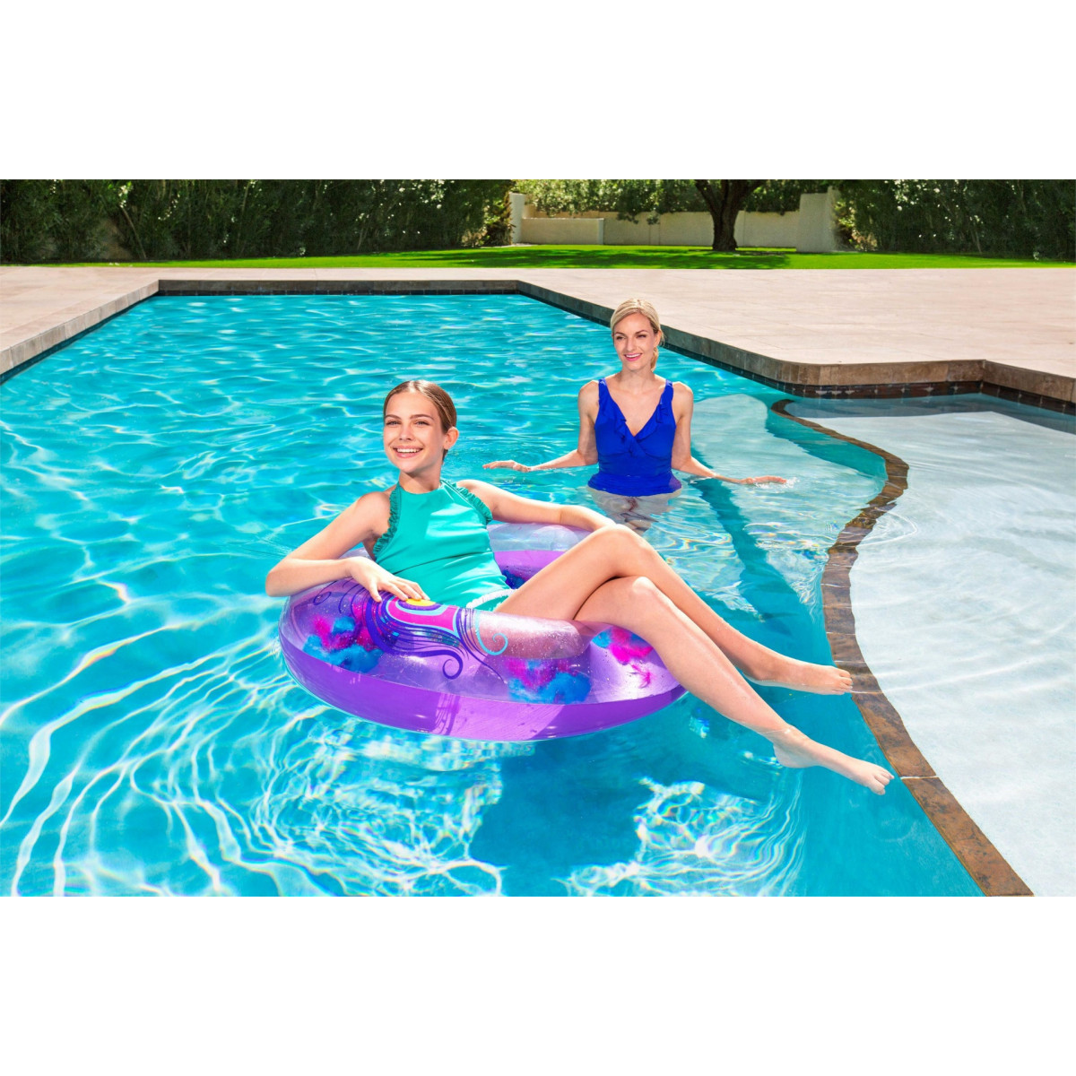 Bestway 36153 galleggiante da piscina e da spiaggia Porpora, Trasparente Anello di nuoto Immagine