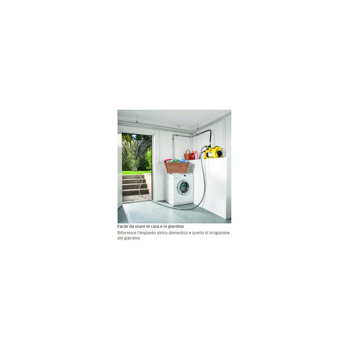 Sia per l'irrigazione costante del giardino che per il rifornimento di lavatrici o water: l'elettropompa BP 5 Casa e giardino è l'ideale per l'utilizzo di fonti idriche alternative per l'approvvigionamento idrico elaborato. La funzione start/stop automatica permette alla BP 5 di accendersi e spegnersi automaticamente. In caso di emergenza, la pompa si spegne automaticamente e si accende la spia di guasto. A parità di portata, la BP 5 Casa e giardino richiede meno potenza del motore di pompe a getto convenzionali - un risparmio energetico di circa il 30%. Altre caratteristiche di comfort sono l'interruttore a pedale integrato, 2 uscite per il funzionamento simultaneo di 2 dispositivi di connessione e i piedini in gomma fonoassorbenti. Kärcher offre anche a 5 anni di garanzia estesa.