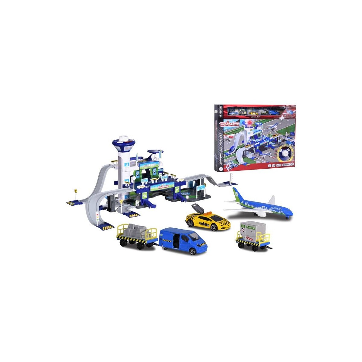 Simba Majorette Playset Aeroporto Con 5 Veicoli, 3 Piani, Ascensore, Torre Di Controllo Con Luci, Suoni, Parcheggi, Area Check In E Area Container