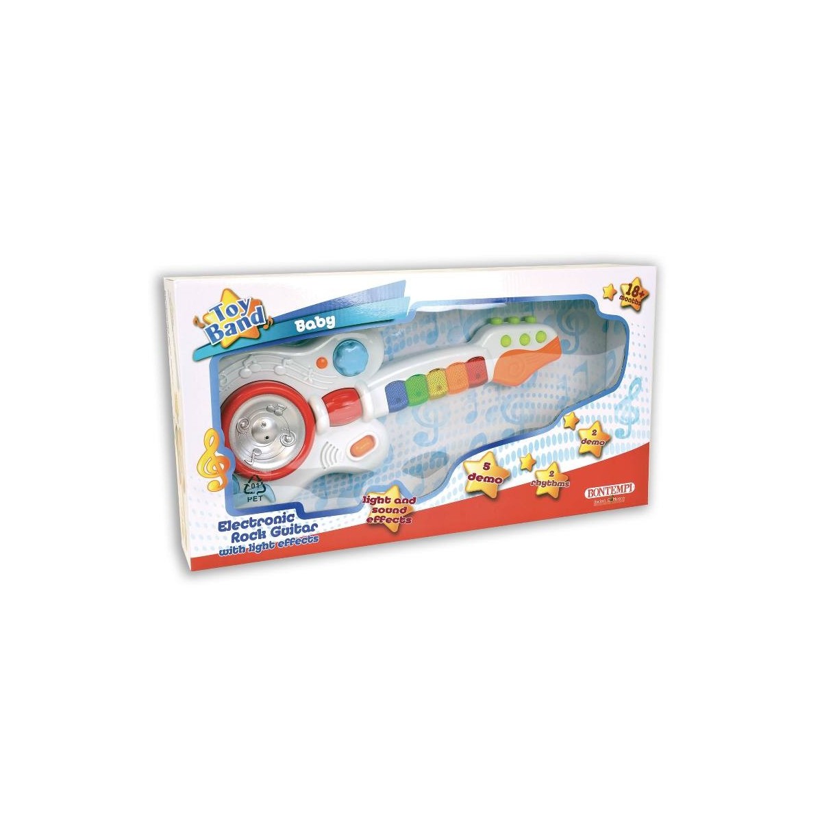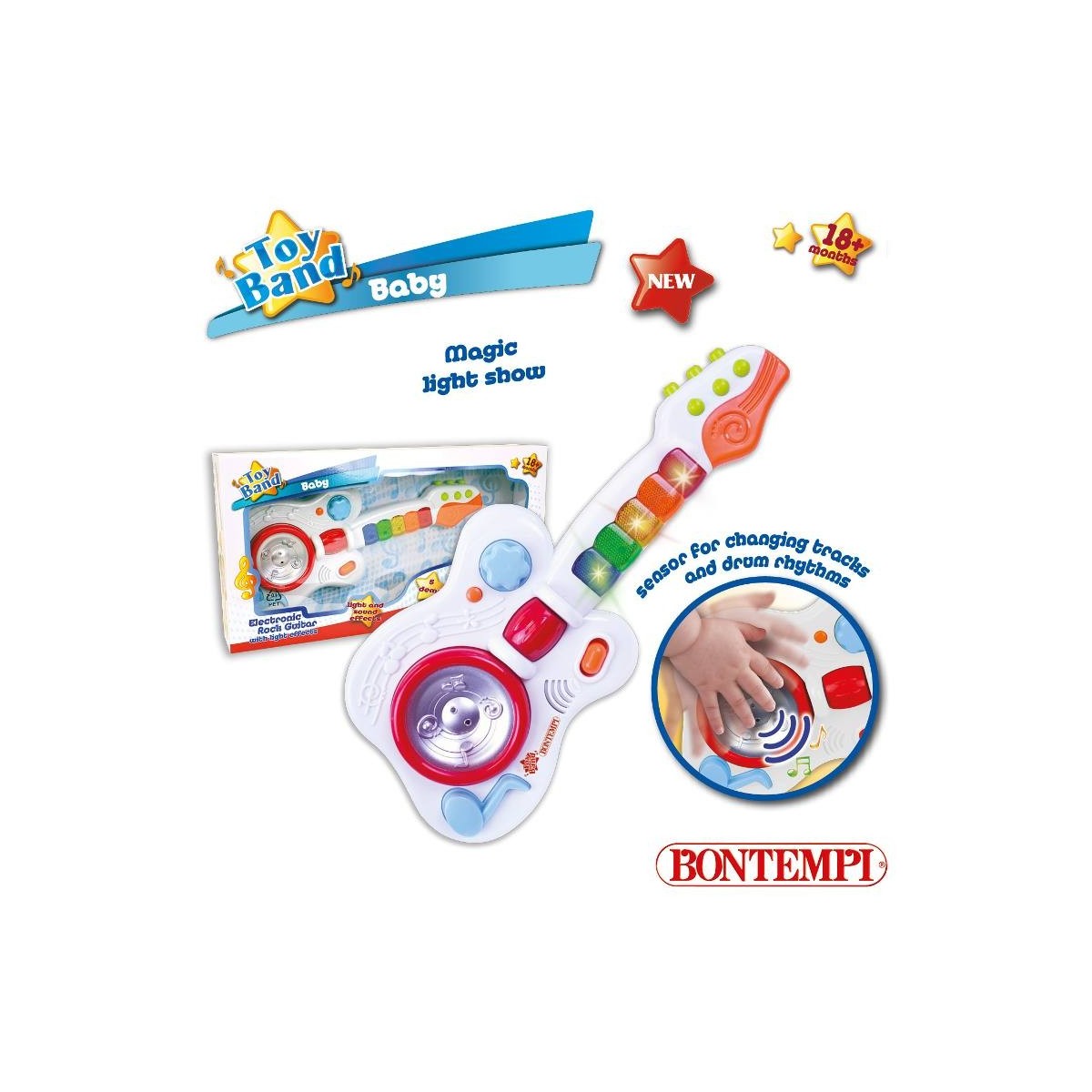 Chitarra baby rock, 5 note musciali, 6 stacchi musicali. Puoi cambiare le basi musicali passando la mano di fronte ai sensori.