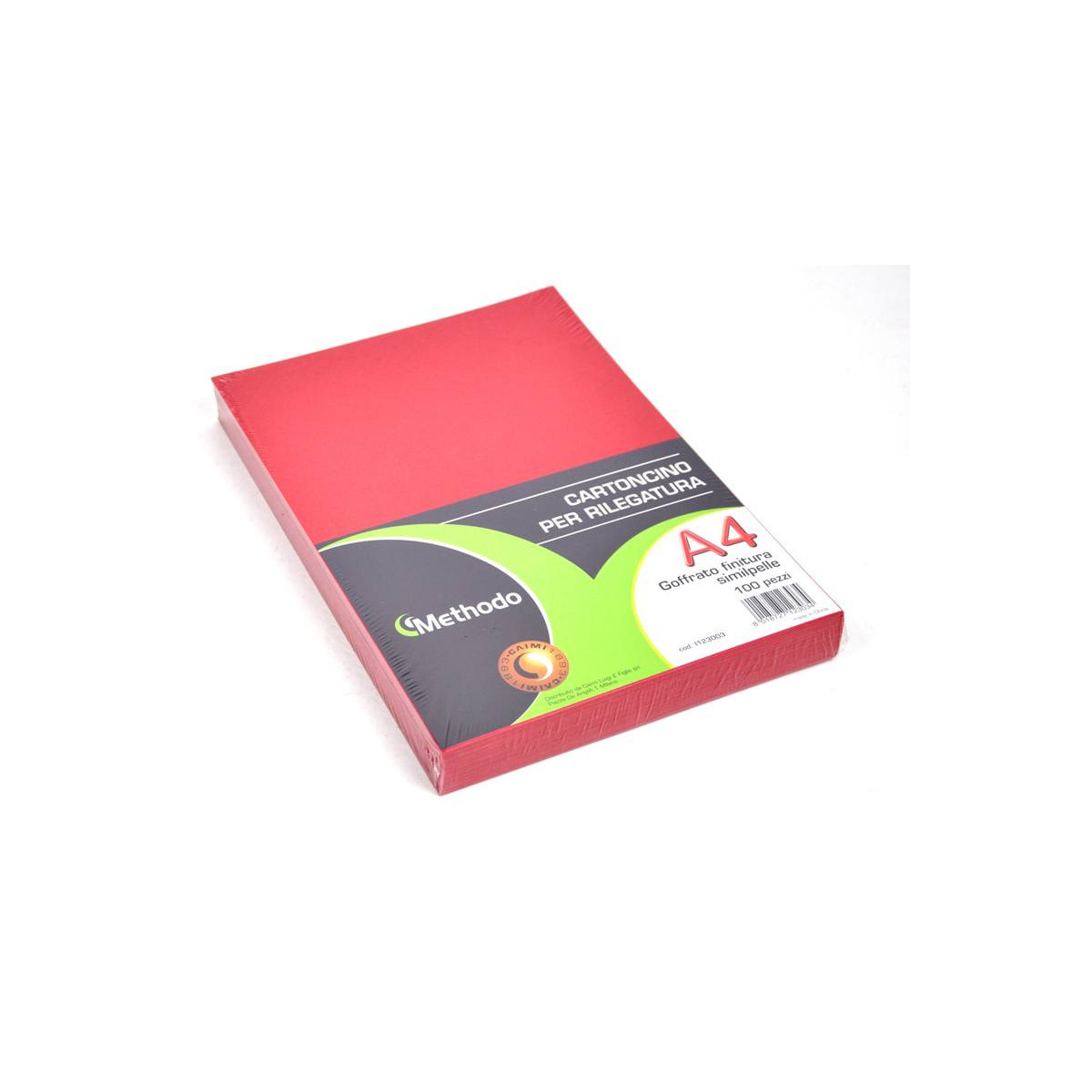 CONFEZIONE 100 CARTONCINI A4 240GR PER RILEGATURA GOFFRATI CON FINITURA IN SIMILPELLE - COLORE ROSSO