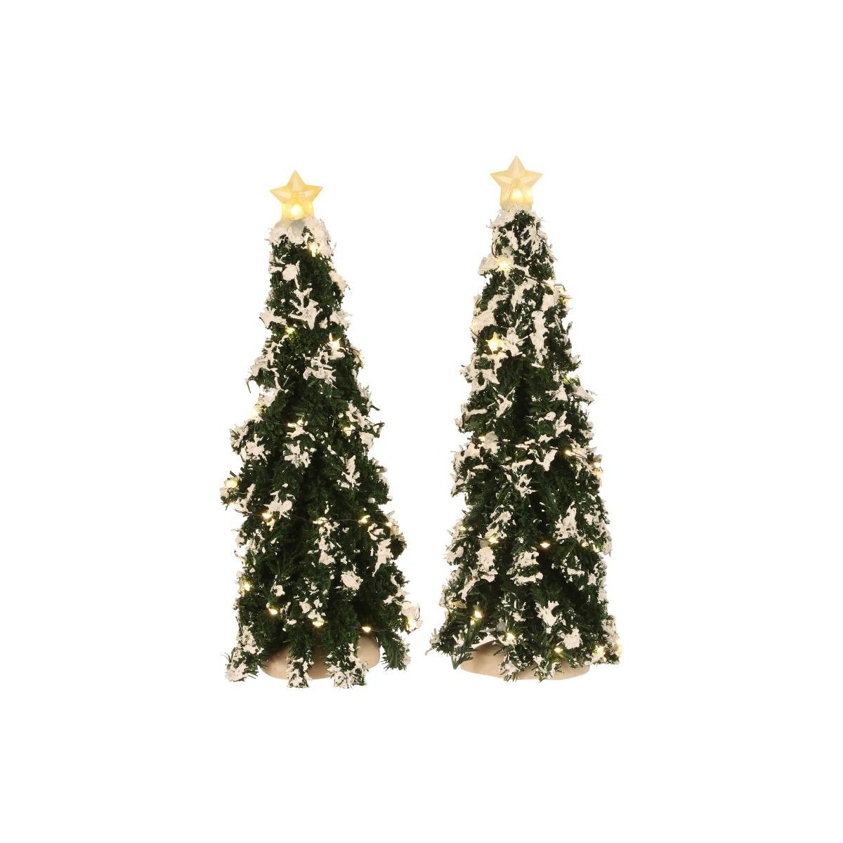 confezione 2 pezzi abete innevato con decorazioni luminose a batteria
