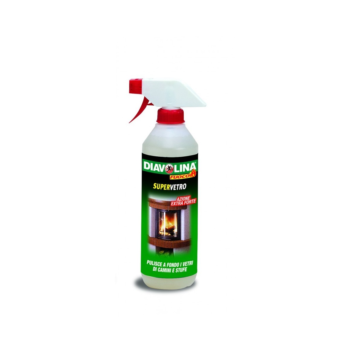 Diavolina SuperVetro è un detergente specifico per i vetri di stufe e camini. Dona brillantezza e non lascia aloni.