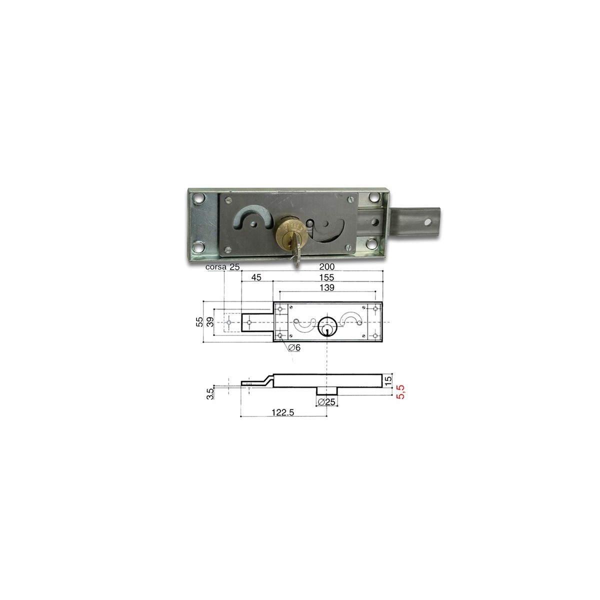 Prefer Serratura laterale destra/sinistra per serrande avvolgibili. A ingranaggi, movimento a chiave sia esterno che interno. Scatola zincata (155x55), cilindro in ottone.