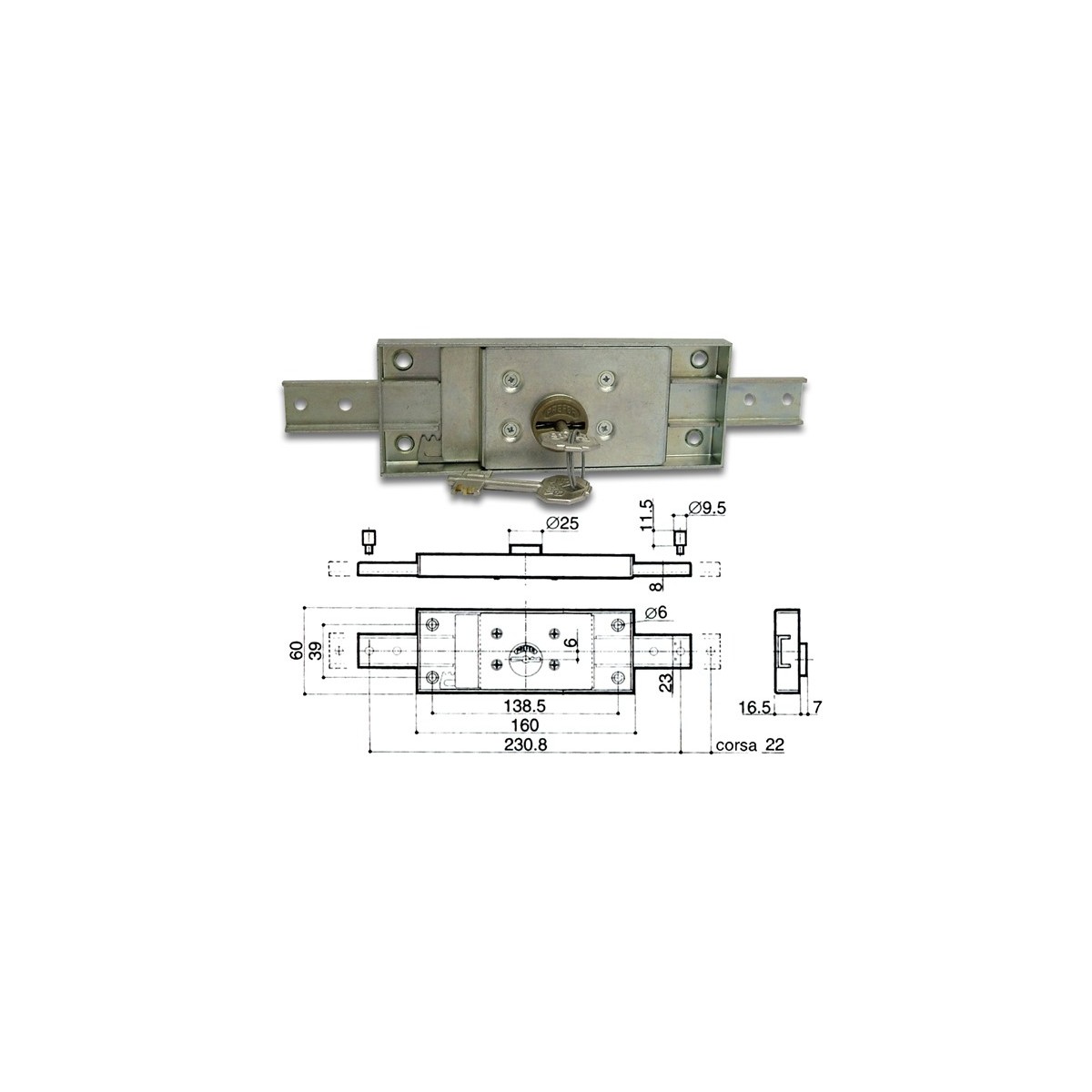 Serratura centrale Prefer 8601 a doppia mappa per serrande avvolgibili. A 5 Gorges in acciaio zinc., movimento a chiave sia esterno che interno. Scatola zincata (160x60), boccola in ottone.