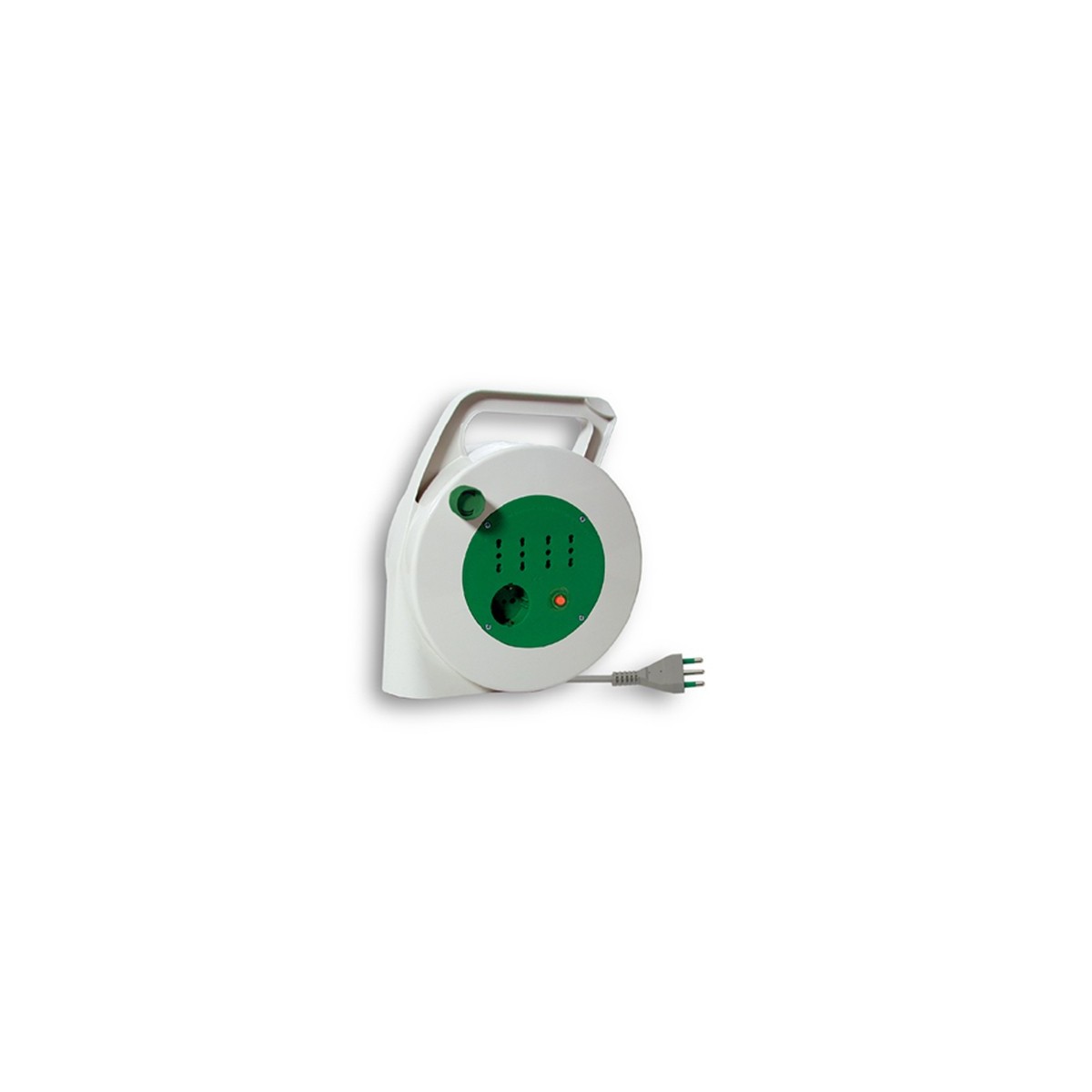 Fme avvolgicavo con 4 prese 2P+T 16 A 50V bipasso + 1 Schuko; spina 2P+T 16A 250V. Filo 3x1,50 tamburo da 245 mm. Lunghezza 15 mt. Utilizzo domestico ed in condizioni ambientali normali. Con disgiuntore.