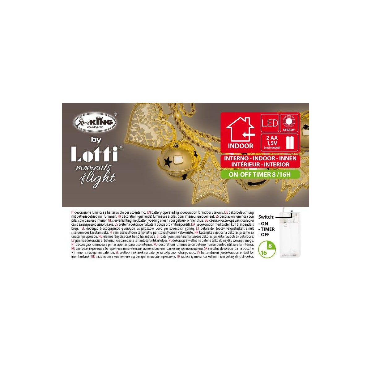 Decorazione Catena Oro Campanelle Diametro 50mm e Stelle Alberi Cuori 36 MicroLED BIANCO CALDO 1,5mm Metallo Traforato VPM Luce