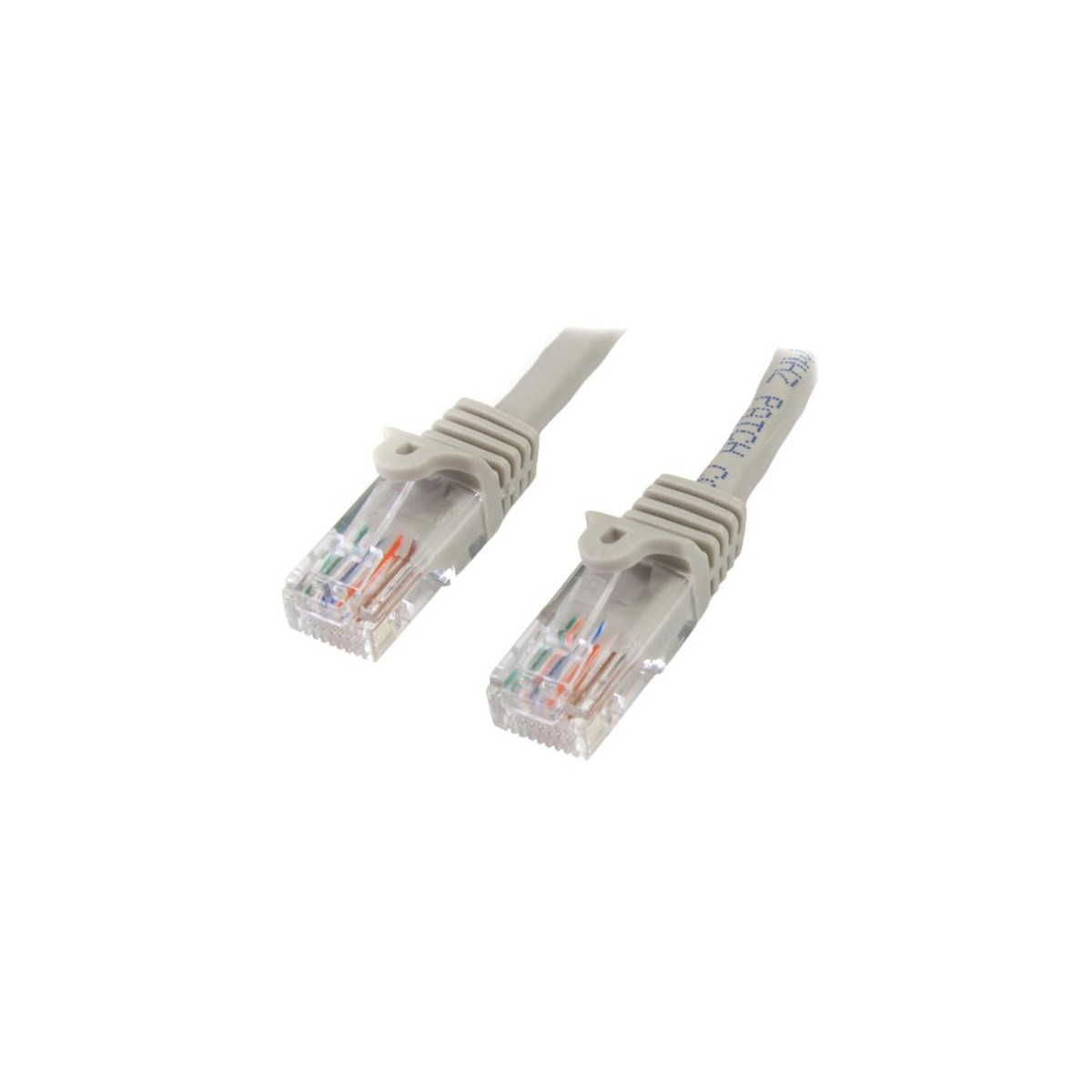 StarTech.com Cavo di Rete da 50cm Grigio Cat5e Ethernet RJ45 Antigroviglio. Lunghezza cavo: 0,5 m, Cavo standard: Cat5e, Schermatura dei cavi: U/UTP (UTP), Connettore 1: RJ-45, Connettore 2: RJ-45, Genere di connettore: Maschio/Maschio, Placcatura contatti: Oro, Velocità di trasferimento dati: 100 Mbit/s, Colore cavo: Grigio