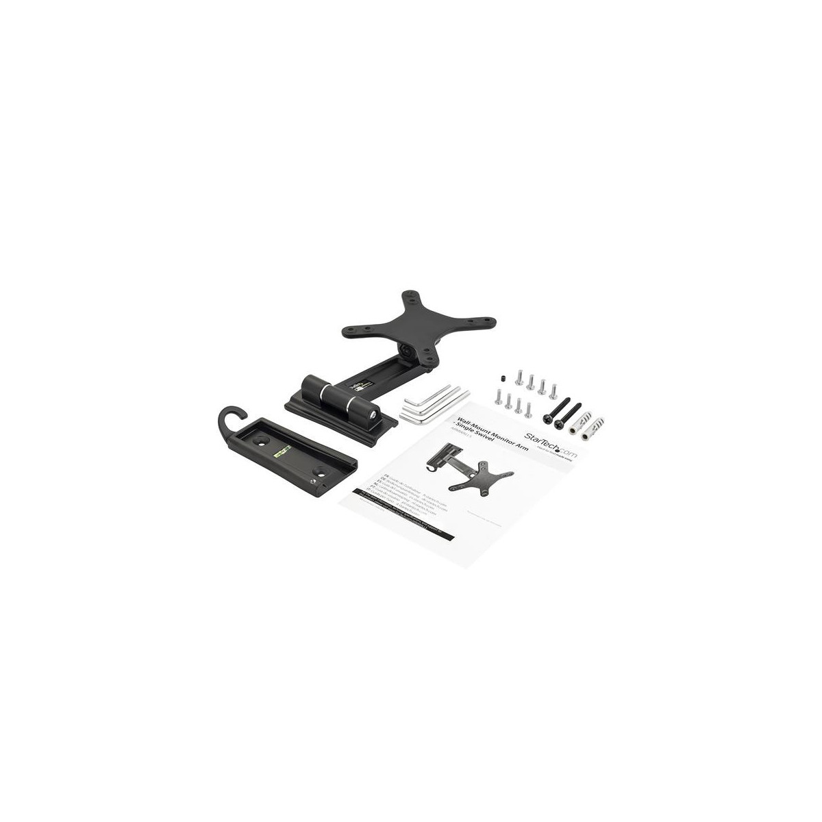 StarTech.com Braccio da Parete per Monitor con Singolo Perno. Peso massimo (capacità): 15 kg, Capienza minima dimensioni dello schermo: 33 cm (13"), Capienza massima dimensioni dello schermo: 68,6 cm (27"), Compatibilità interfaccia di montaggio (min): 75 x 75 mm, Compatibilità interfaccia di montaggio (max): 100 x 100 mm. Angolo di rotazione: -90 - 90°, Inclinazione: -45 - 45°. Colore del prodotto: Nero