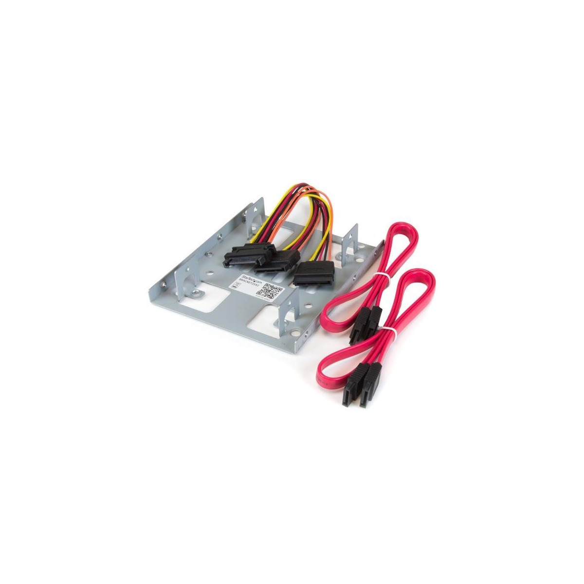 StarTech.com Staffa per doppio HDD da 2,5" a 3,5” per dischi rigidi SATA - Staffa per 2 dischi da 2,5" a 3,5” per montaggio in alloggiamento. Dimensione: 8,89 cm (3.5"), Tipo: Pannello portante, Dimensione hard disk: 2.5". Larghezza: 102 mm, Profondità: 116 mm, Altezza: 22 mm. Dimensioni imballo (LxPxA): 140 x 165 x 38 mm, Larghezza imballo: 140 mm, Profondità imballo: 165 mm. Cavi inclusi: SATA, Numero di chiavi del lucchetto incluse: 13 pezzo(i)