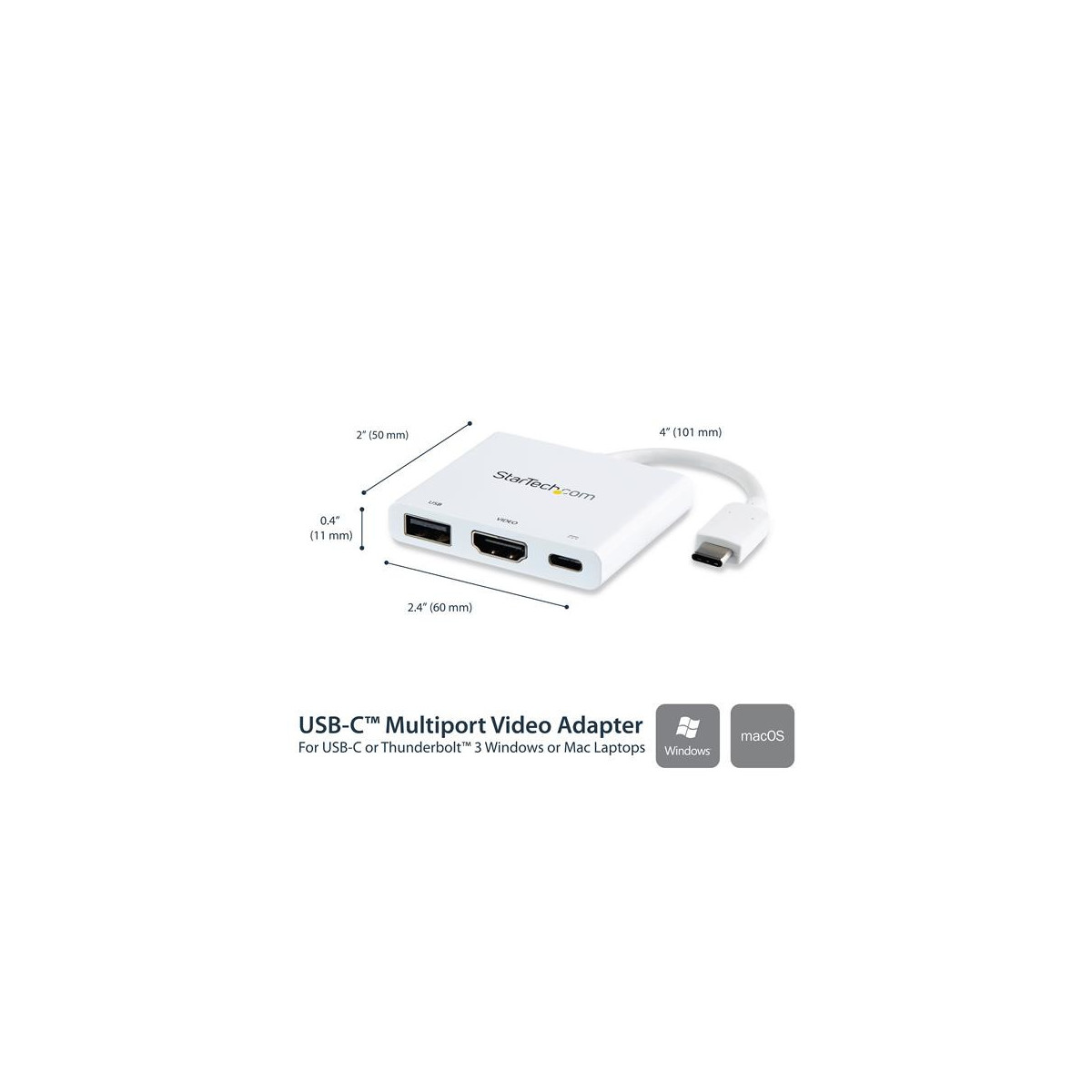 StarTech.com Adattatore Multifunzione USB-C a HDMI 4k con Power Delivery e porta USB-A - Bianco
