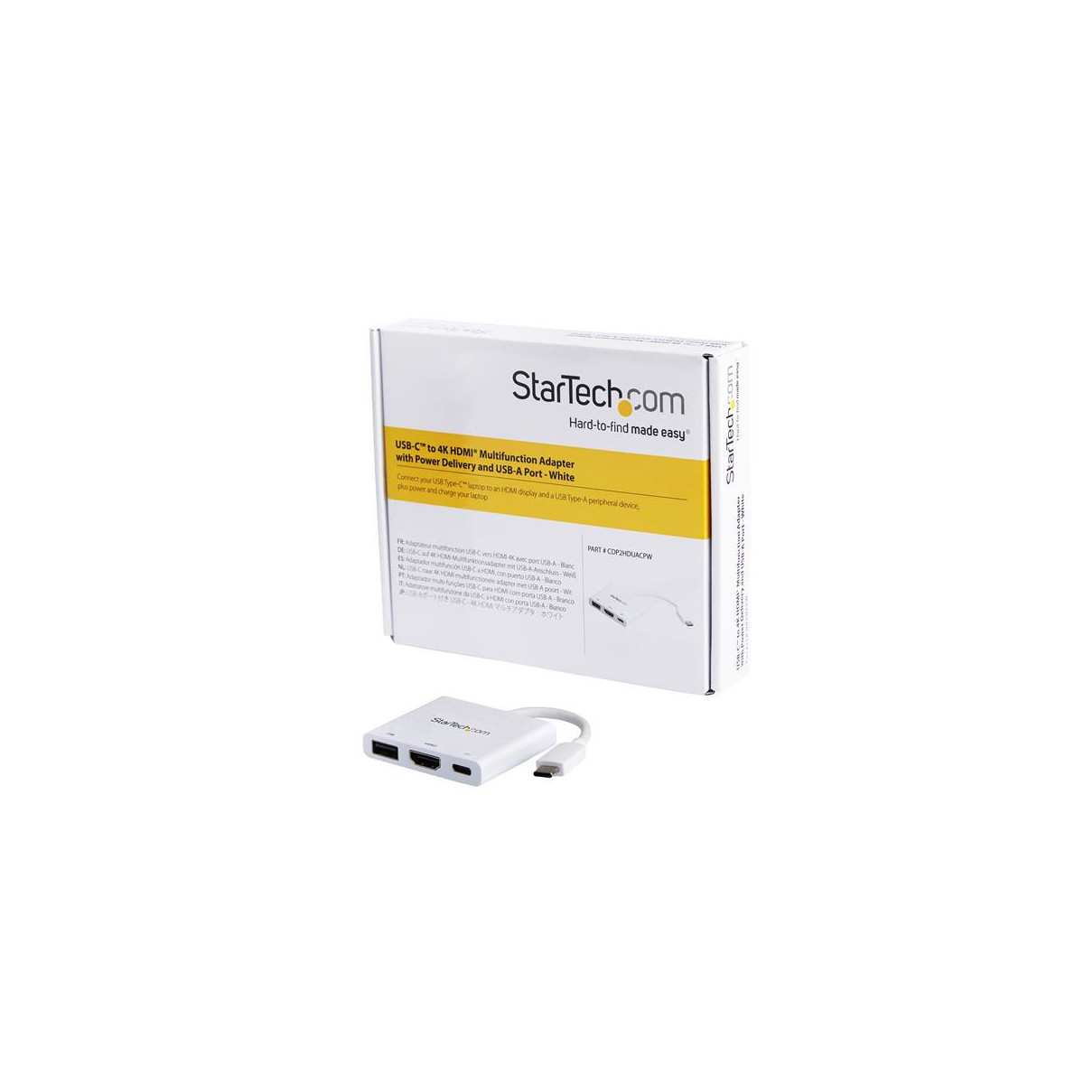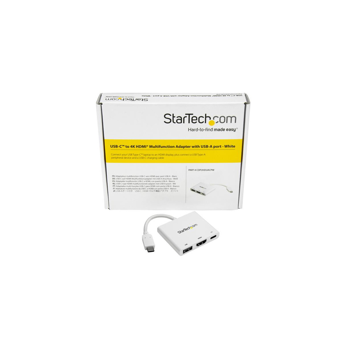 StarTech.com Adattatore Multifunzione USB-C a HDMI 4k con Power Delivery e porta USB-A - Bianco. Tecnologia di connessione: Cablato, Interfaccia host: USB 3.2 Gen 1 (3.1 Gen 1) Type-C, Fornitura di alimentazione USB fino a: 60 W. Colore del prodotto: Bianco, Velocità di trasferimento dati: 5 Gbit/s, Risoluzione (digitale massima): 4096 x 2160 Pixel. Tipologia alimentazione: USB. Larghezza: 50 mm, Profondità: 60 mm, Altezza: 11 mm. Larghezza imballo: 145 mm, Profondità imballo: 175 mm, Altezza imballo: 32 mm