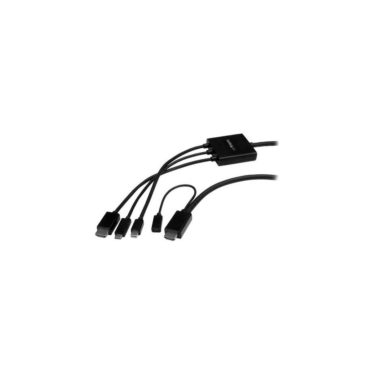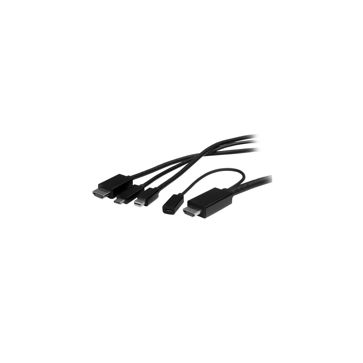 StarTech.com Cavo Convertitore USB-C, HDMI o Mini DisplayPort a HDMI - 2m. Lunghezza cavo: 2 m, Connettore 1: HDMI, Connettore 2: HDMI + Mini DisplayPort + USB Type-C. Quantità per pacco: 1 pezzo(i), Larghezza imballo: 122 mm, Profondità imballo: 221 mm. Peso: 222 g, Larghezza: 60 mm, Profondità: 2000 mm