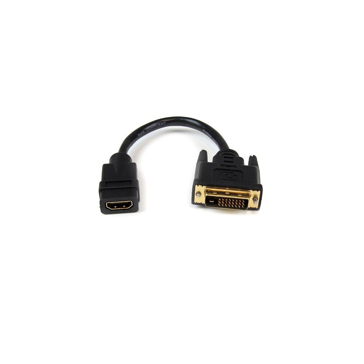 StarTech.com Adattatore cavo video HDMI a DVI-D da 20 cm - HDMI femmina a DVI maschio. Lunghezza cavo: 0,203 m, Connettore 1: HDMI tipo A (Standard), Connettore 2: DVI-D. Quantità per pacco: 1 pezzo(i), Larghezza imballo: 128 mm, Profondità imballo: 220 mm. Peso: 32 g, Larghezza: 20 mm, Profondità: 203,2 mm