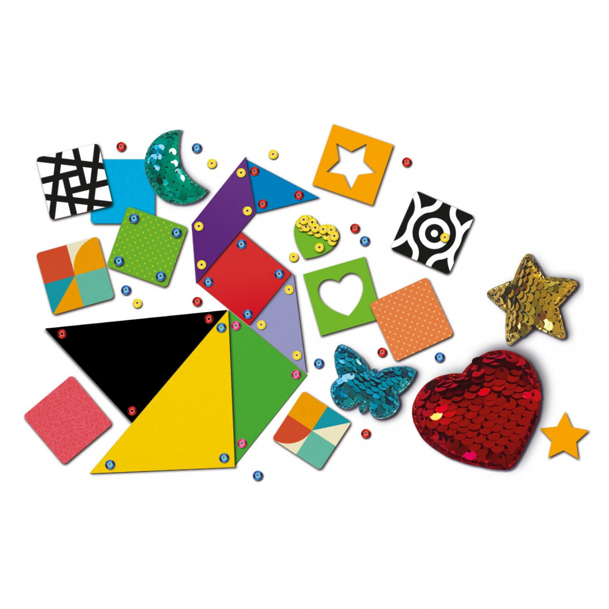 Costruisci, personalizza e decora i tuoi magnetini liberando la fantasia! Puoi realizzare un tangram magnetico, utilizzare le paillettes per creare originali effetti di luce e divertirti con tante altre attività suggerite nelle istruzioni!