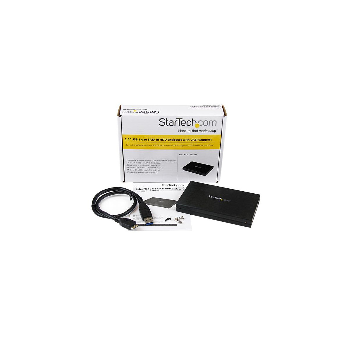 Il box esterno hard disk USB 3.0 con UASP S2510BMU33 permette di collegare un disco rigido SATA III da 2.5" (HDD) o unità stato solido (SSD) mediante una porta USB disponibile. L'enclosure offre prestazioni ottimali con una connessione USB 3.0 ma è compatibile all'indietro anche con connessioni host USB 2.0/1.1.