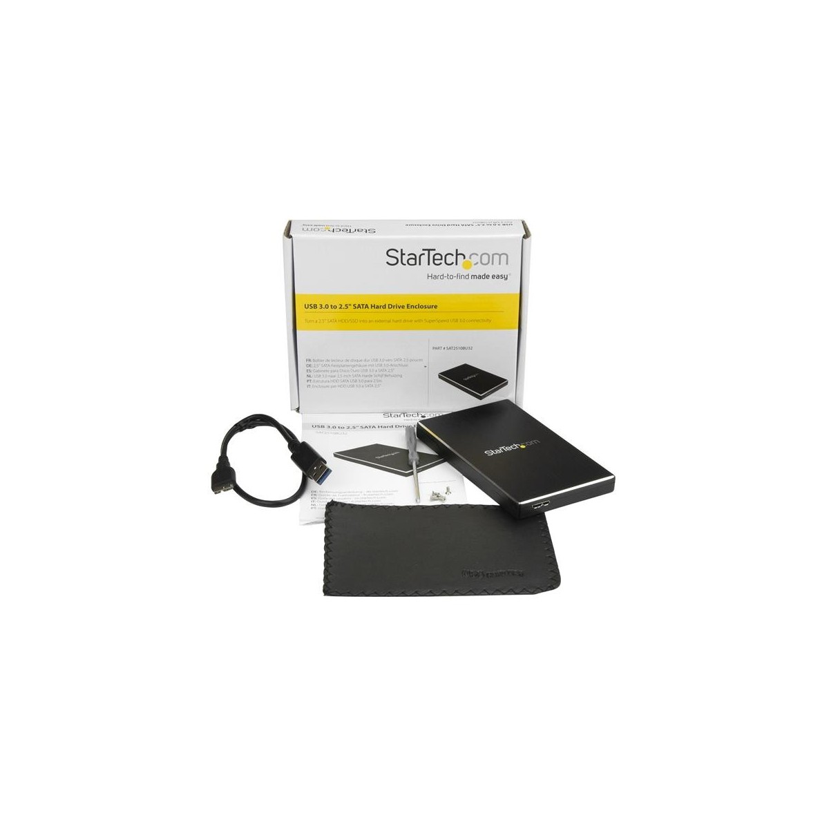 StarTech.com Box esterno USB 3.0 per disco rigido SATA o SSD da 2,5". Tipo di prodotto: Enclosure HDD/SSD. numero di dispositivi di archivio supportati: 1, Dimensione del dispositivo di archiviazione: 2.5", Interfacce dell'unità di archiviazione supportate: SATA, Seriale ATA II, Serial ATA III, Capacità massima di memoria: 1 TB. Velocità di trasferimento dati: 3 Gbit/s. Hot-swap. Colore del prodotto: Nero. Connettore USB: Micro-USB B