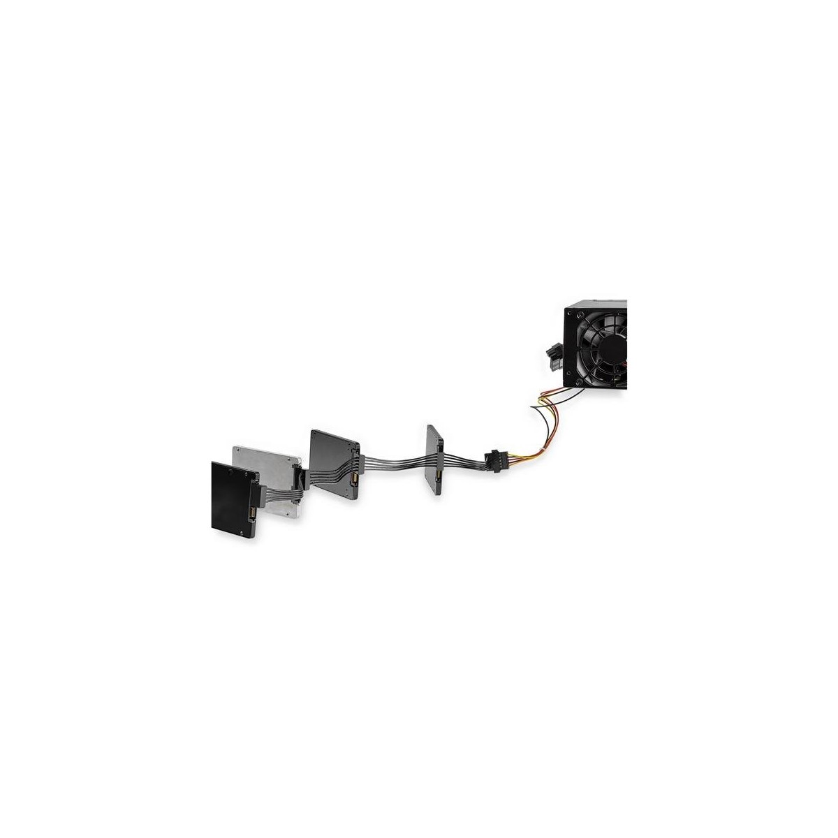 Il cavo splitter di alimentazione SATA consente di superare il limite del numero di dispositivi SATA che possono essere installati nel sistema, ad esempio le unità SSD o le unità ottiche SATA, basato sulle connessioni agli alimentatori disponibili. Il cavo elimina il costo dovuto alla necessità di aggiornare l'alimentatore per la connessione di unità SATA aggiuntive.
