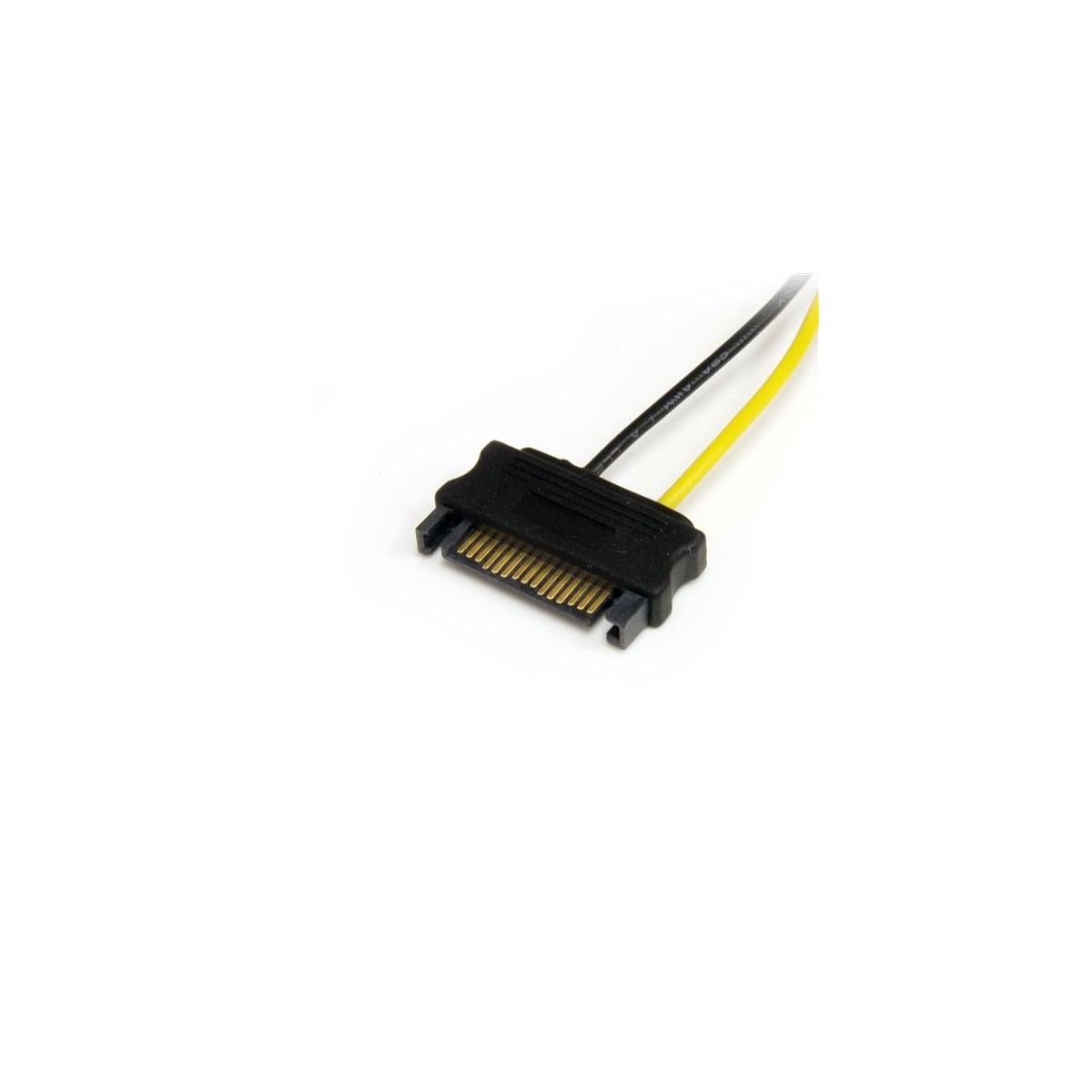 Il cavo adattatore di alimentazione SATA a scheda video PCI Express da SATPCIEXADAP prevede un connettore di alimentazione PCI Express (femmina) a 6 pin e due connettori di alimentazione SATA (maschi) da 15 pin, rappresentando una soluzione economicamente efficiente per collegare una scheda video PCIe a connettori di alimentazione Serial ATA forniti dall'alimentazione del computer eliminando la necessità di aggiornare l'alimentazione per motivi di compatibilità con la scheda video.