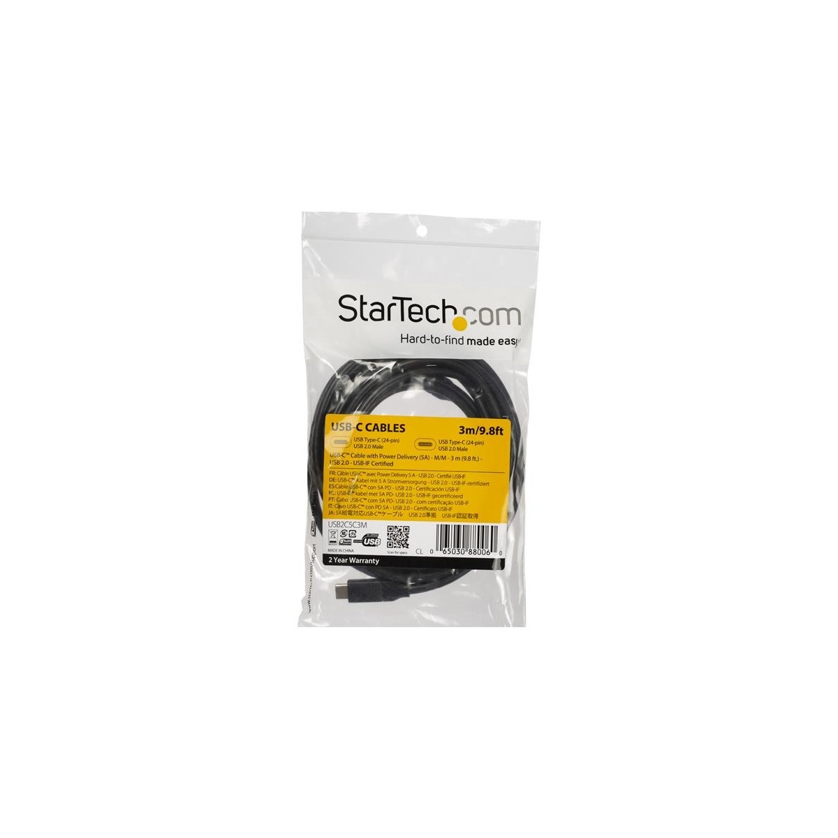 StarTech.com USB2C5C3M. Lunghezza cavo: 3 m, Connettore 1: USB C, Connettore 2: USB C, Versione USB: 2.0, Velocità massima di trasferimento dati: 480 Mbit/s, Placcatura contatti: Nichel, Colore del prodotto: Nero