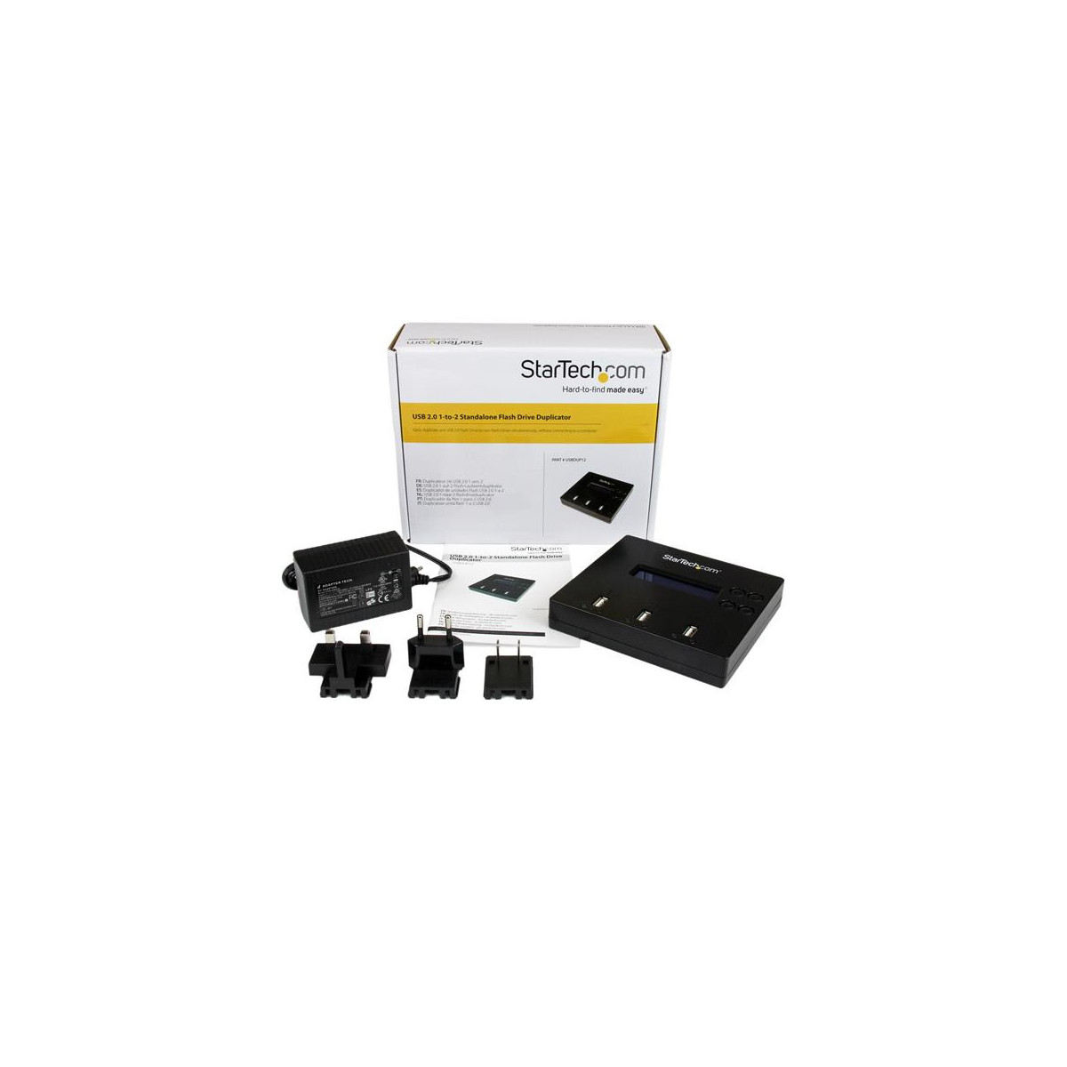 StarTech.com Duplicatore ed Eraser Indipendente per unità Drive Flash 1:2. Tensione di ingresso AC: 110 - 240 V, Voltaggio di uscita: 5 V, Corrente d'uscita: 2 A. Dimensioni (LxPxA): 130 x 120 x 25 mm, Peso: 190 g. Tipologia display: LCD, Colore retroilluminazione: Blu. Peso dell'imballo: 550 g, Altezza imballo: 77 mm, Larghezza imballo: 168 mm. Certificazione: CE, FCC, TAA