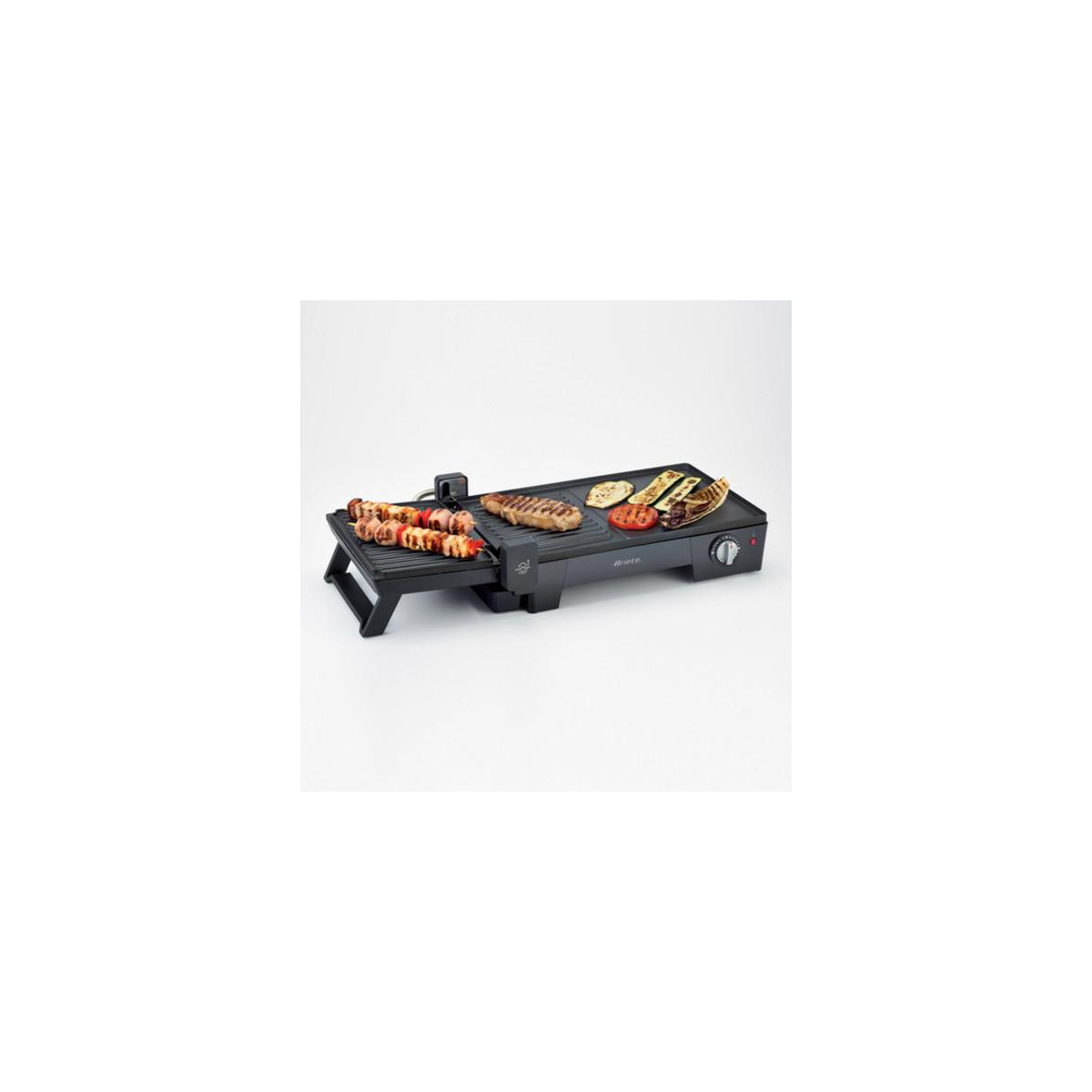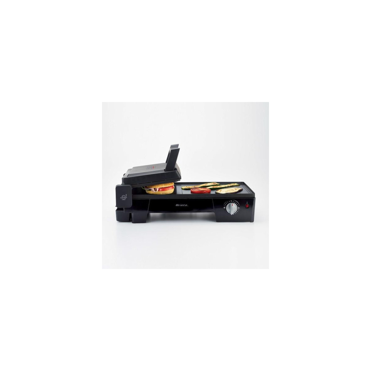 MultiGrill 3 in 1 di Ariete è più di una semplice griglia: è il nuovo strumento indispensabile in cucina o per i vostri barbecue, che permette di soddisfare i gusti di tutti gli invitati. Panini, carne, verdure e toast sono solo alcuni dei golosi piatti che si possono preparare. Elemento distintivo di Multi Grill 3 in 1 è sicuramente rappresentato dalla multifunzionalità e dalla versatilità. Ecco i vari utilizzi: grigilia a contatto, barbecue, piastra rigata/liscia, barbecue estendibile piastra liscia/rigata, grazie alla rotazione a 180 gradi del coperchio.
