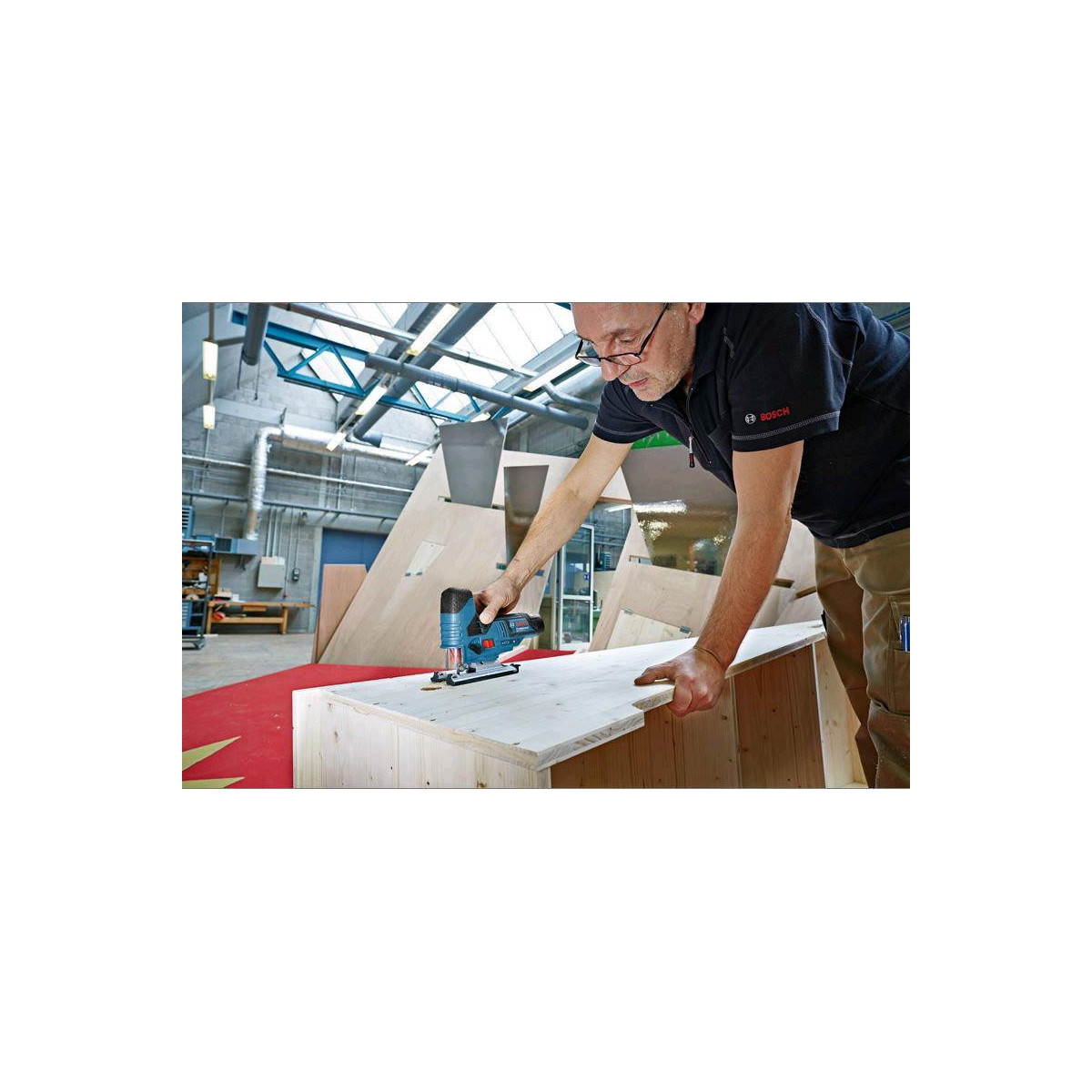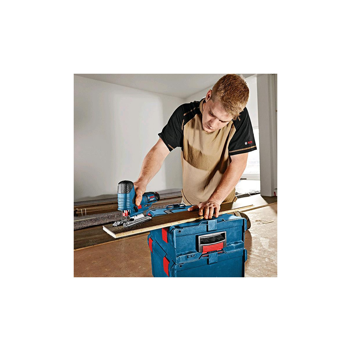 Questo utensile è concepito per eseguire tagli curvi e trasversali e per applicazioni di livello semplice ed intermedio su legno massiccio, pannelli in truciolato e legno composito. Compatibile con il sistema di aspirazione della polvere Click & Clean Bosch e con altri aspiratori Bosch, nonché con tutte le batterie e tutti i caricabatterie Bosch Professional da 12 Volt (Professional 12V System).