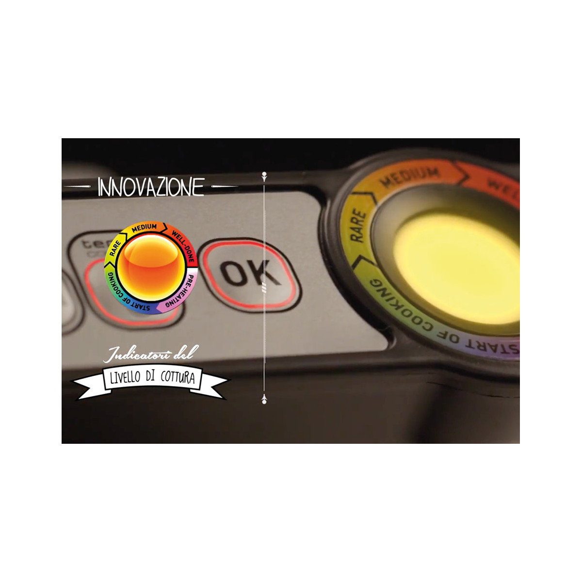 6 programmi automatici e un indicatore del livello di cottura per una cottura perfetta, da al sangue a ben cotto.