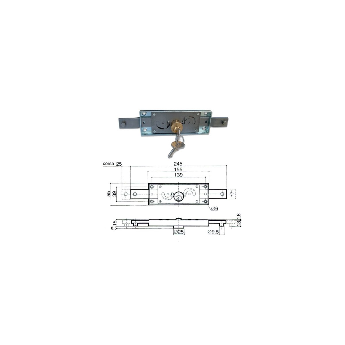Prefer Serratura centrale per serrande avvolgibili A212 con catenacci piegati. A ingranaggi, movimento con chiave sia esterno che interno. Scatola zincata (155x55), cilindro in ottone. Fornita con 2chiavi.