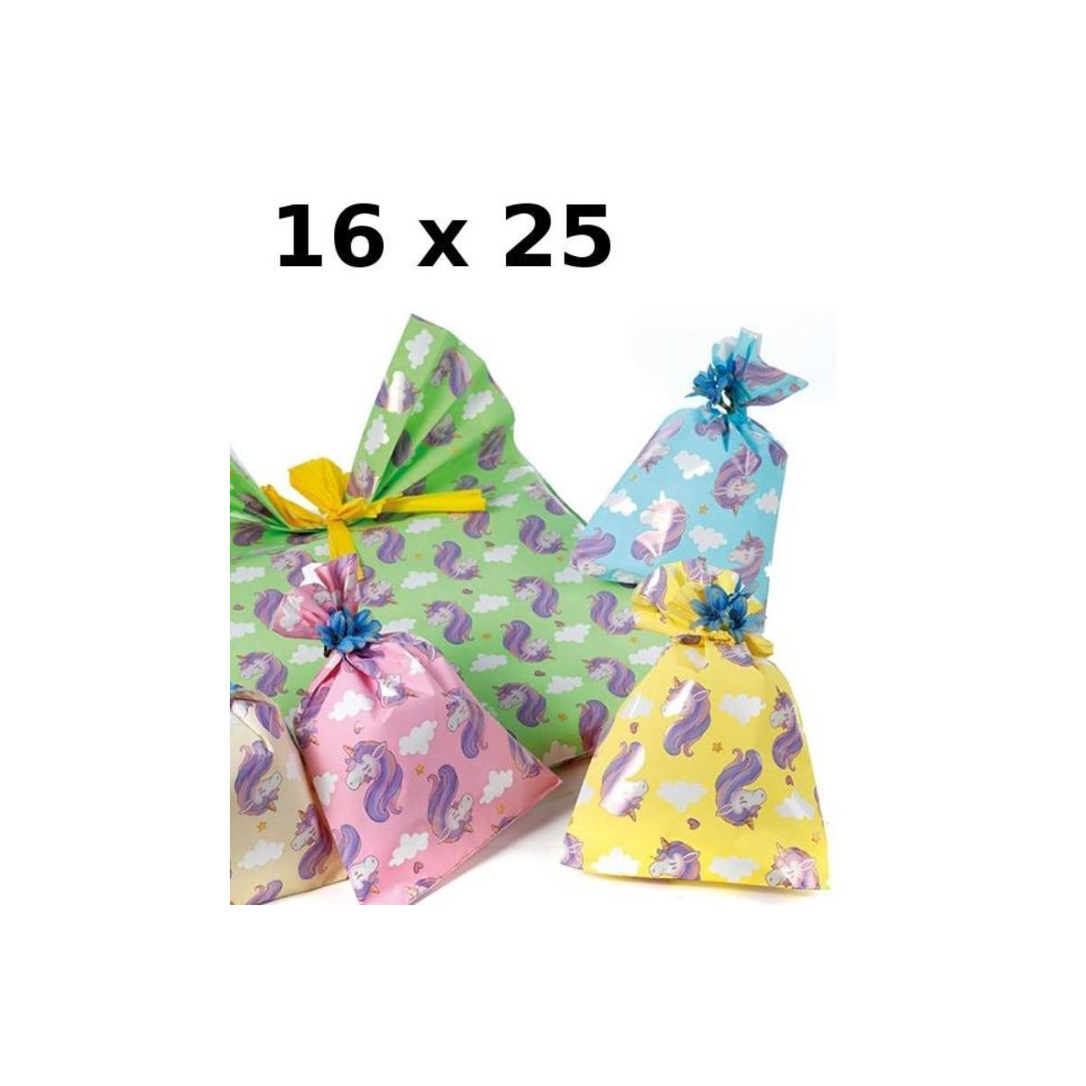 Confezione 100 buste regalo trama unicorno misura 16x25cm