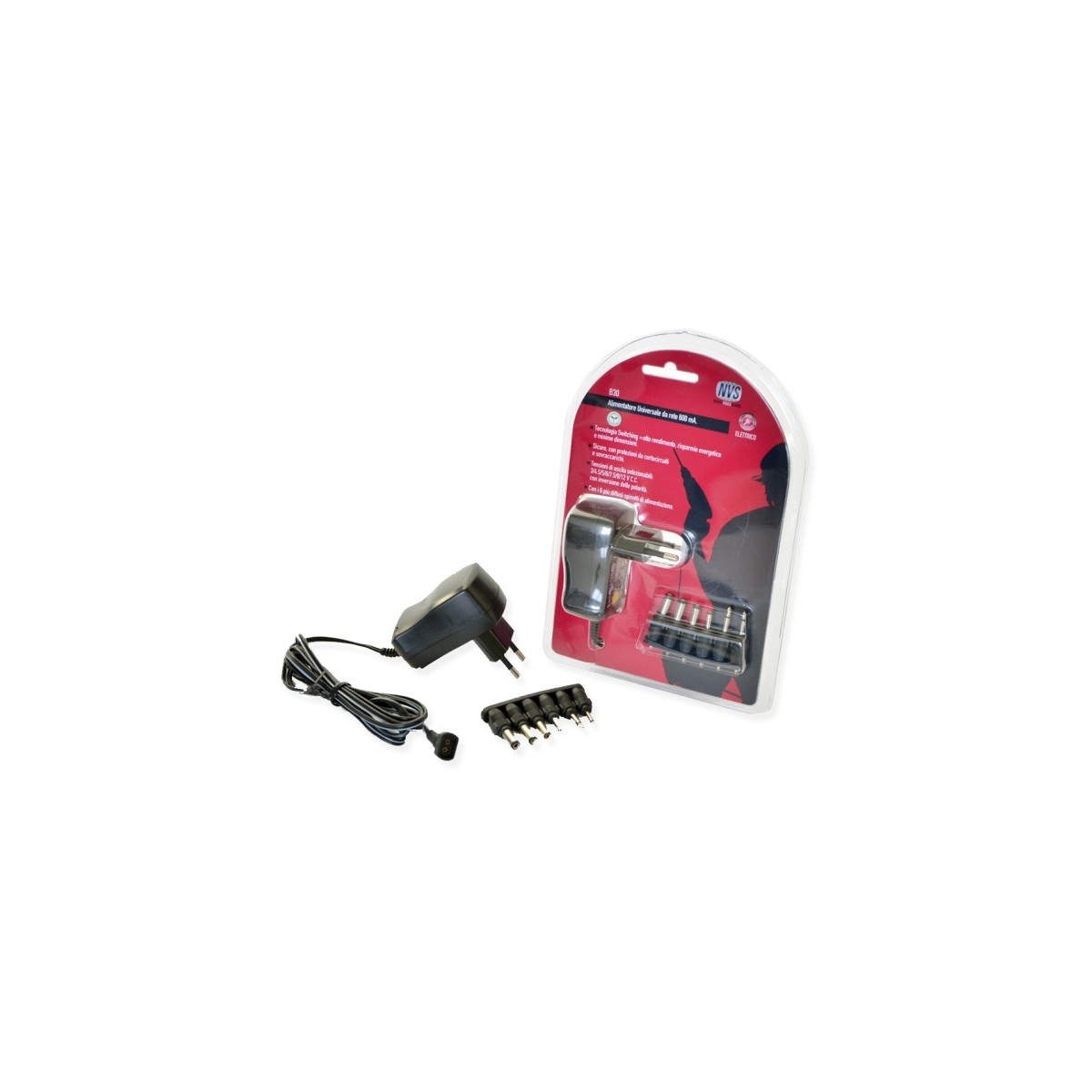 - Alimentatore universale con Tecnologia Switching, ad alto rendimento, a risparmio energetico, sicuro, con protezioni da cortocircuiti, sovratensioni e sovraccarichi.