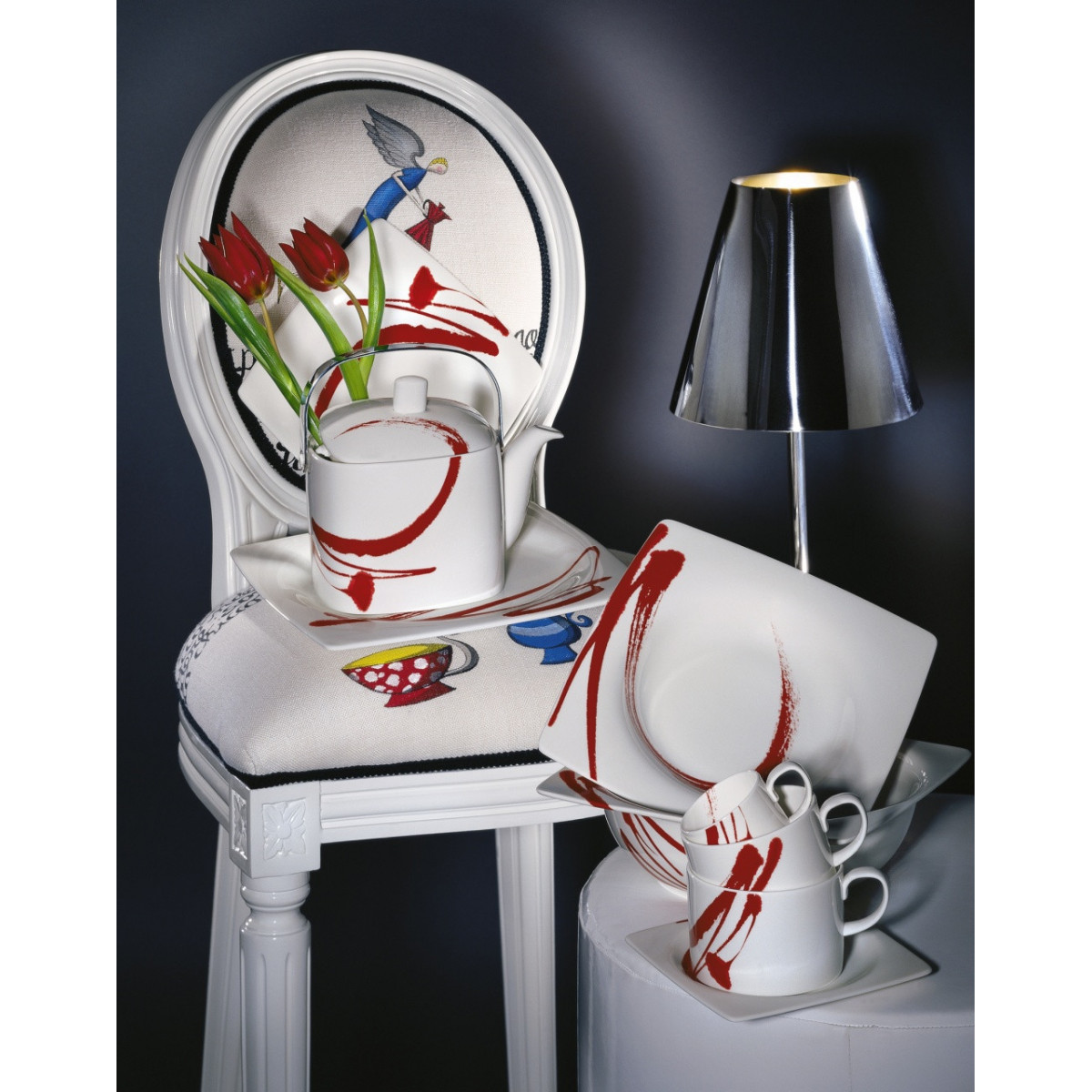 Livellara A0410738. Colore del prodotto: Rosso, Bianco, Materiali: Porcellana, Forma: Quadrato