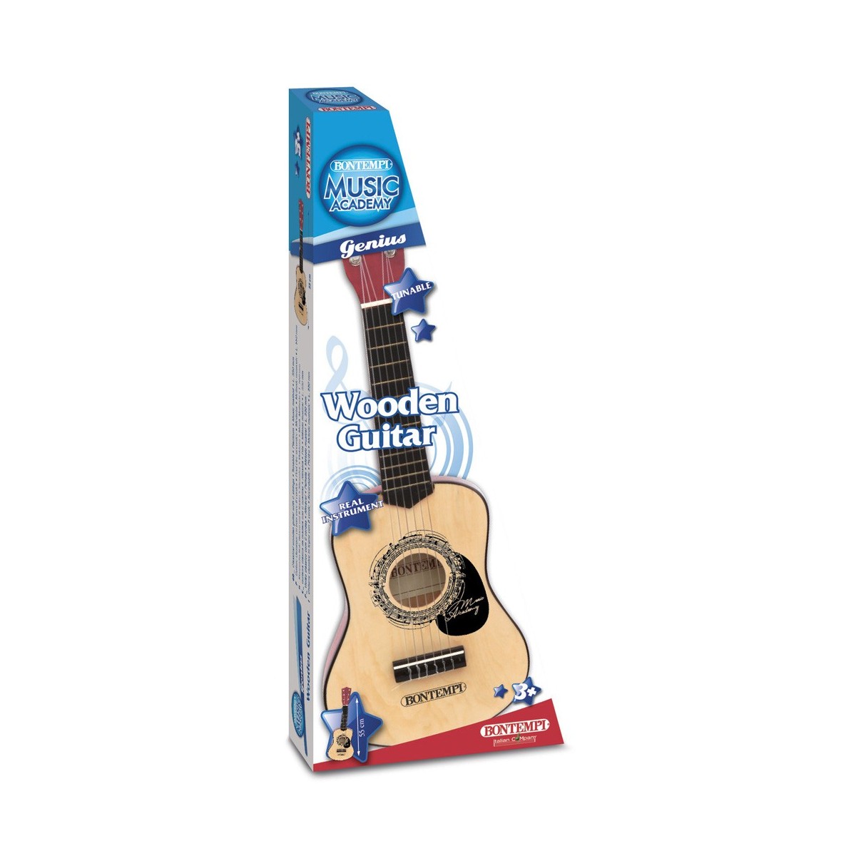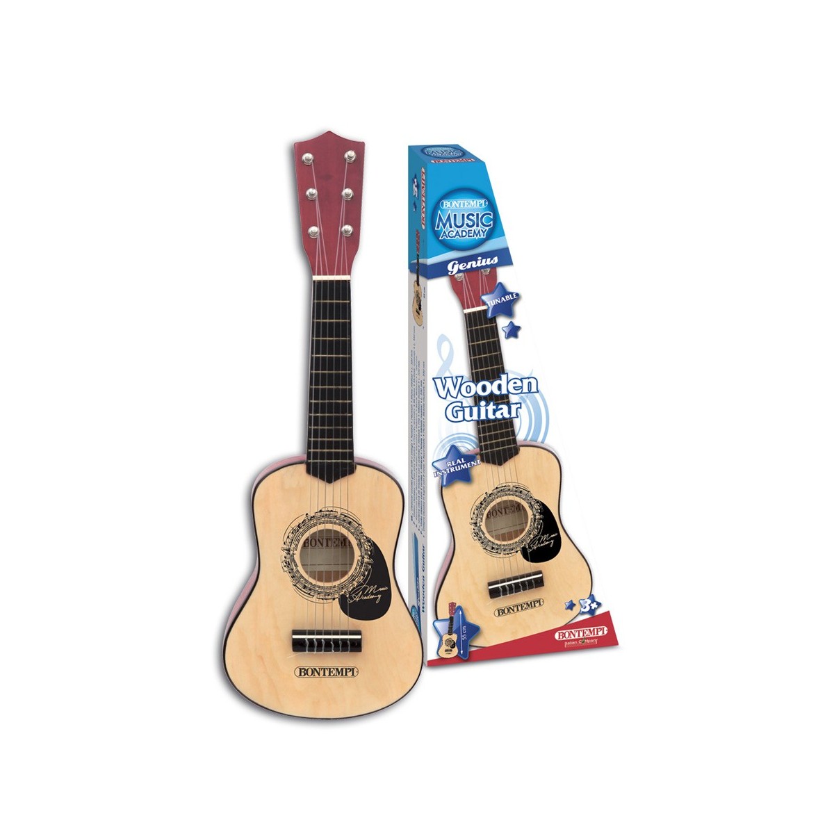 Bontempi Wooden Guitar. Tipo di prodotto: Giocattolo musicale, Colore del prodotto: Nero, Legno, Età consigliata (min): 3 anno/i. Avviso CSS UE: Non adatto per bambini con età inferiore ai 36 mesi. Larghezza: 181 mm, Profondità: 65 mm, Altezza: 550 mm. Larghezza imballo: 218 mm, Profondità imballo: 73 mm, Altezza imballo: 565 mm. Larghezza scatola principale: 58,5 cm, Lunghezza del cartone principale: 24,2 cm, Altezza scatola principale: 31,5 cm