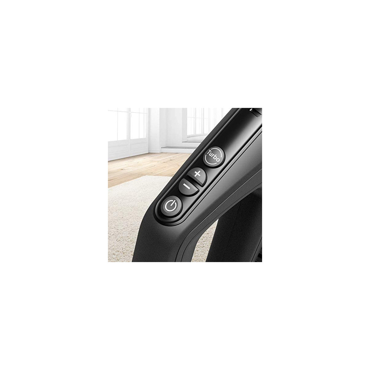 Non è più necessario piegarsi per regolare la potenza a seconda delle diverse superfici. Il Remote Power Control consente di controllare tutte le impostazioni direttamente dall'impugnatura. Basta un tocco per passare alla modalità turbo, standby o al livello di potenza desiderato. Ora puoi goderti le migliori prestazioni di pulizia su tutti i tipi di pavimento.