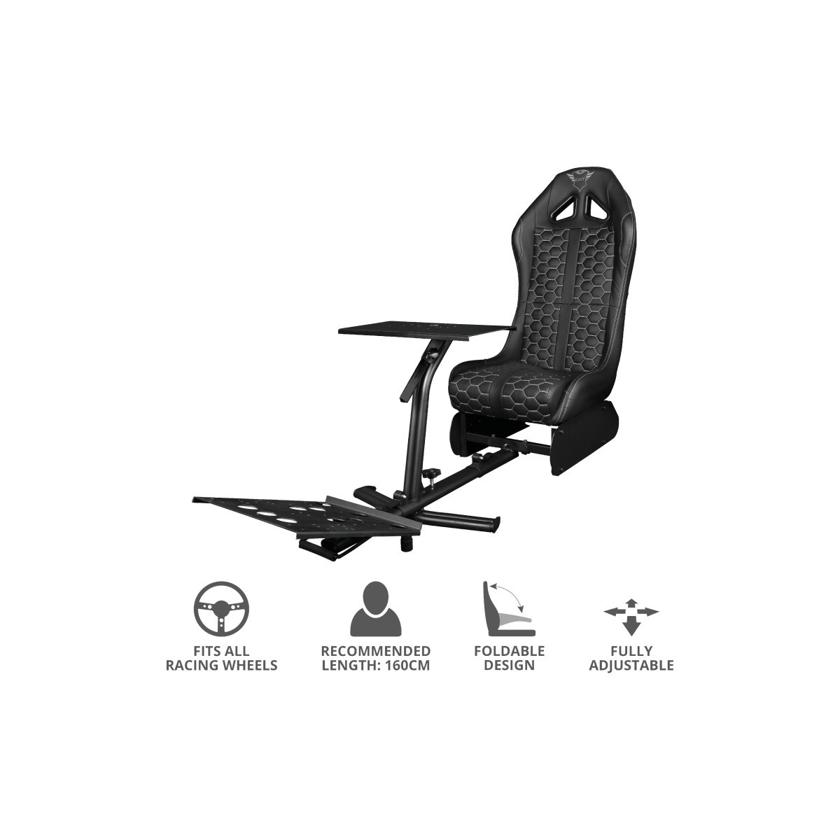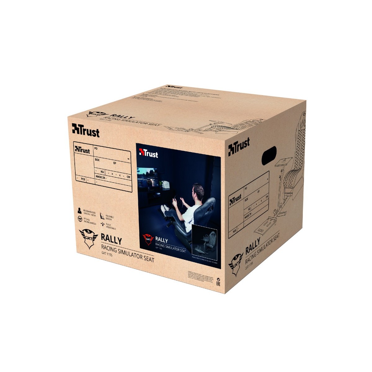 Trust GXT 1155. Tipo di prodotto: Sedia per gaming universale, Piattaforme di gioco supportate: Universale, Peso massimo per utente: 150 kg. Altezza Seduta Minima: 31 cm, Altezza seduta Massima: 31 cm, Larghezza: 500 mm. Tipo di imballo: Scatola