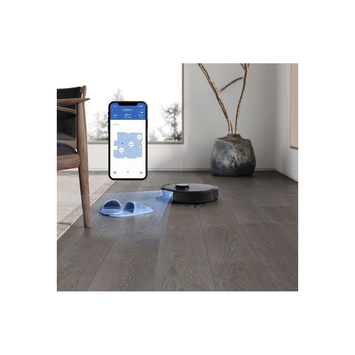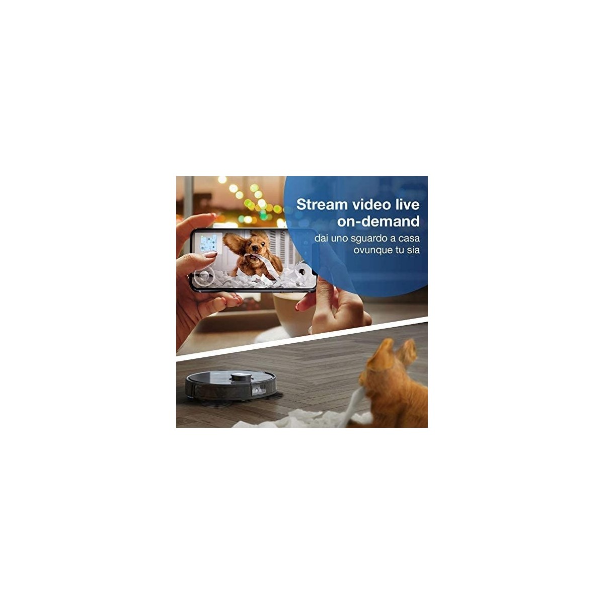 Lo stream video live on-demand è una funzionalità all'avanguardia nei robot per pulizie. Puoi controllare se hai dimenticato di chiudere una finestra o se hai lasciato l'acqua della doccia aperta. Puoi dirigere il robot in punti specifici per guardare la stanza attraverso la videocamera del robot nell'App ECOVACS.**