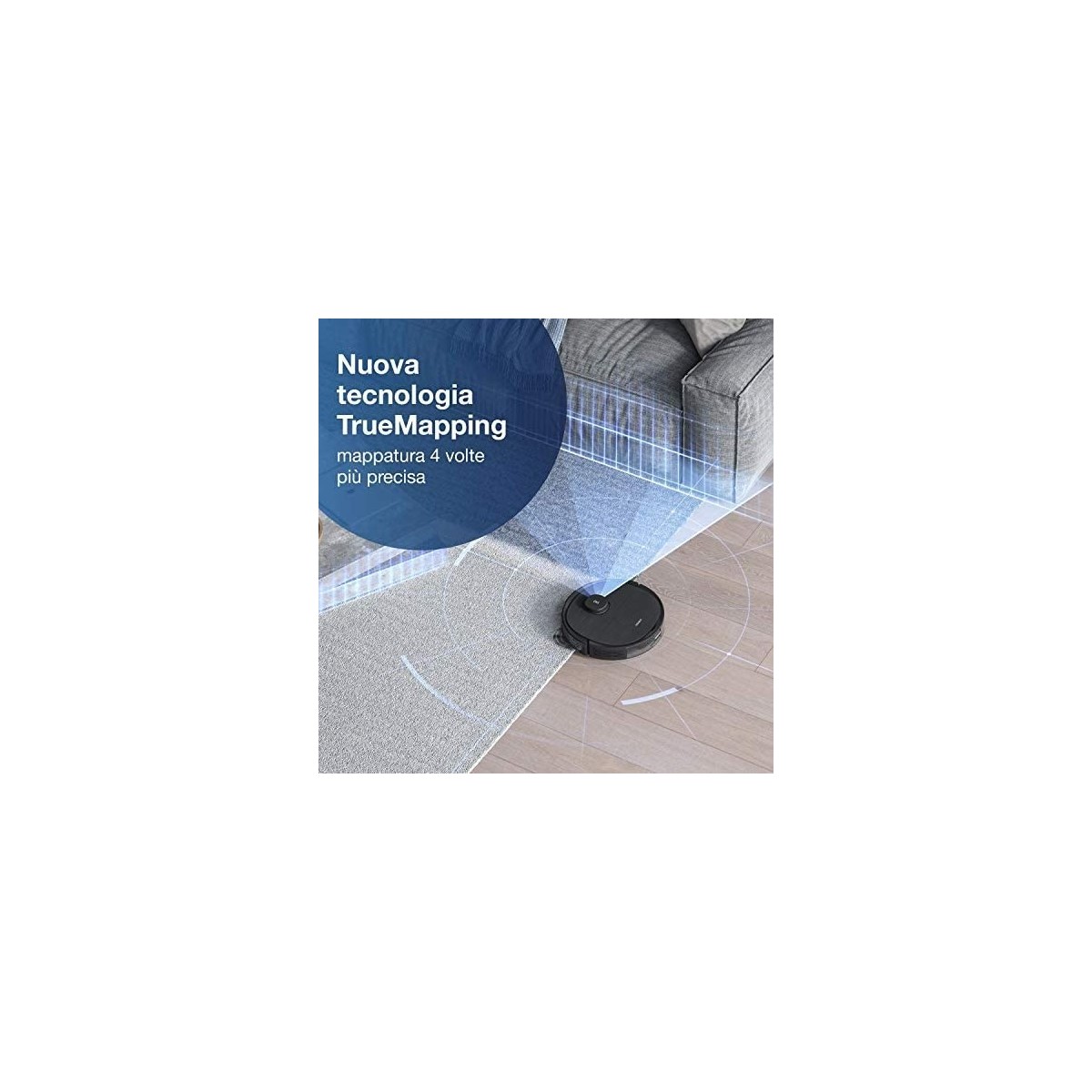 Il DEEBOT OZMO T8 AIVI con intelligenza artificiale avanzata porta le tecnologie robotiche al livello successivo. Ostacoli multipli possono essere riconosciuti automaticamente, così d'ora in poi puoi dire addio ai robot che restano bloccati. Lo stream video live on-demand dal tuo DEEBOT ti dà un nuovo livello di monitoraggio e tranquillità.* La tecnologia TrueMapping con un nuovissimo sensore laser DToF, raddoppia la distanza di rilevamento e quadruplica la precisione nell'individuazione degli oggetti* (*rispetto a DEEBOT con navigazione laser standard). Funzionalità come impostazione di confini virtuali, rilevamento di moquette e tappeti, pulizia delle stanze programmate individualmente e mappatura multi-piano rendono ancora più comoda la pulizia. Una pulizia profonda con un'efficienza superiore viene assicurata dal rivoluzionario sistema di conservazione della pressione così come dalla tecnologia di lavaggio OZMO™ Pro unica nel suo genere. OZMO™ Pro include un nuovo piatto di supporto per il panno ad alta frequenza di vibrazioni che può essere usato per lavare i pavimenti con le macchie più ostinate.