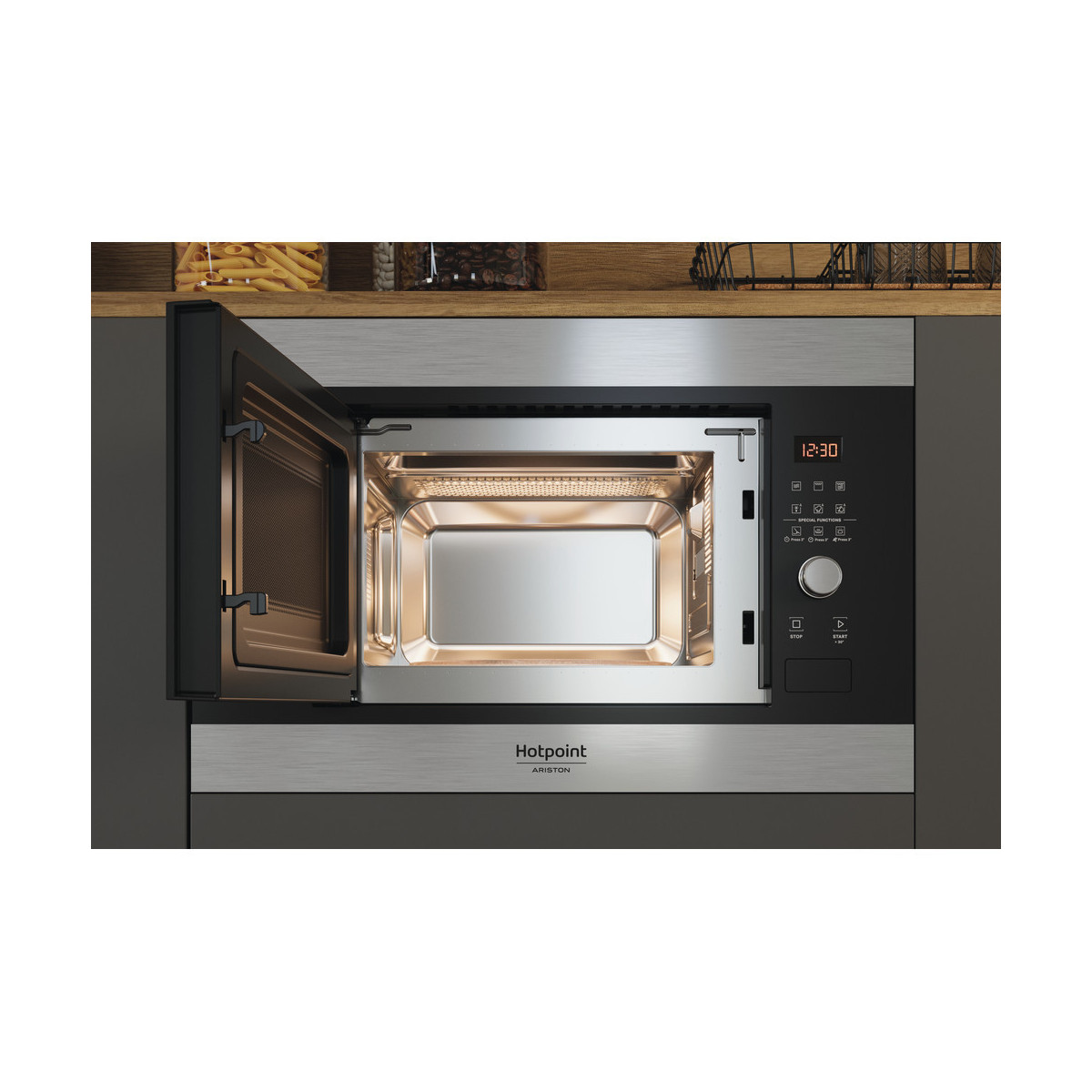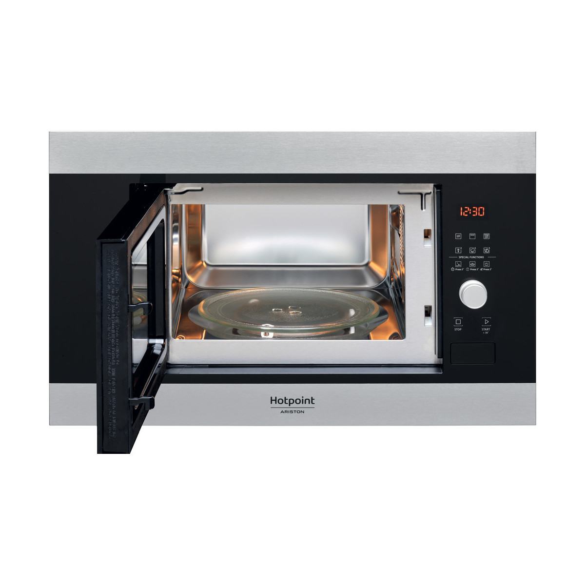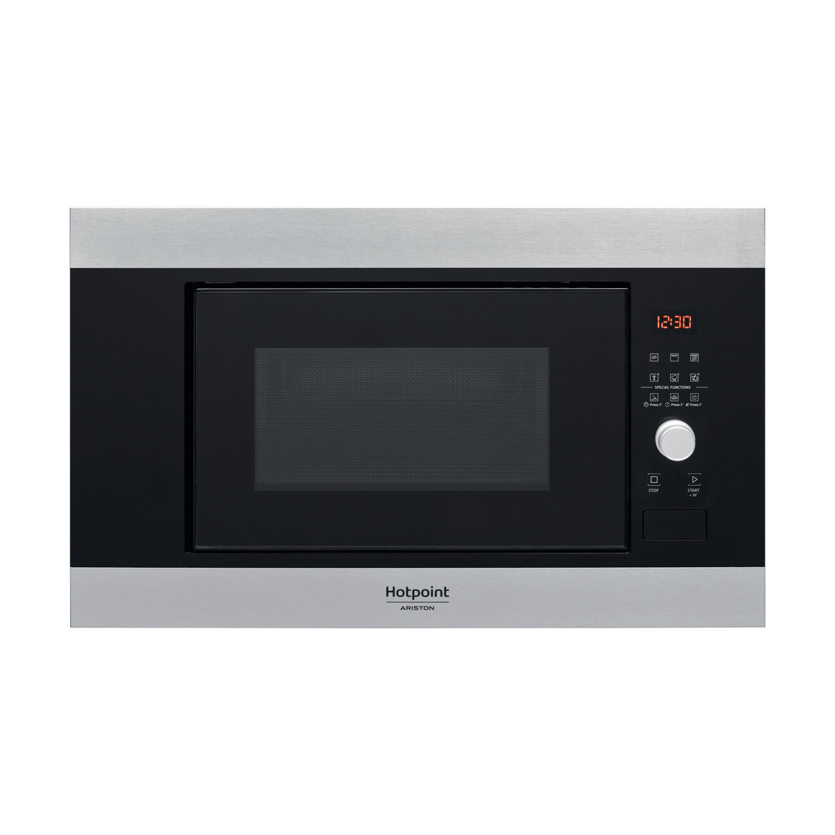 Hotpoint MF20G IX HA. Posizionamento dell'apparecchio: Da incasso, Tipo di prodotto: Microonde con grill, Capacità interna: 20 L. Tensione di ingresso AC: 230-240 V, Frequenza di ingresso AC: 50 Hz, Corrente: 12 A. Larghezza: 594 mm, Profondità: 349 mm, Altezza: 390 mm