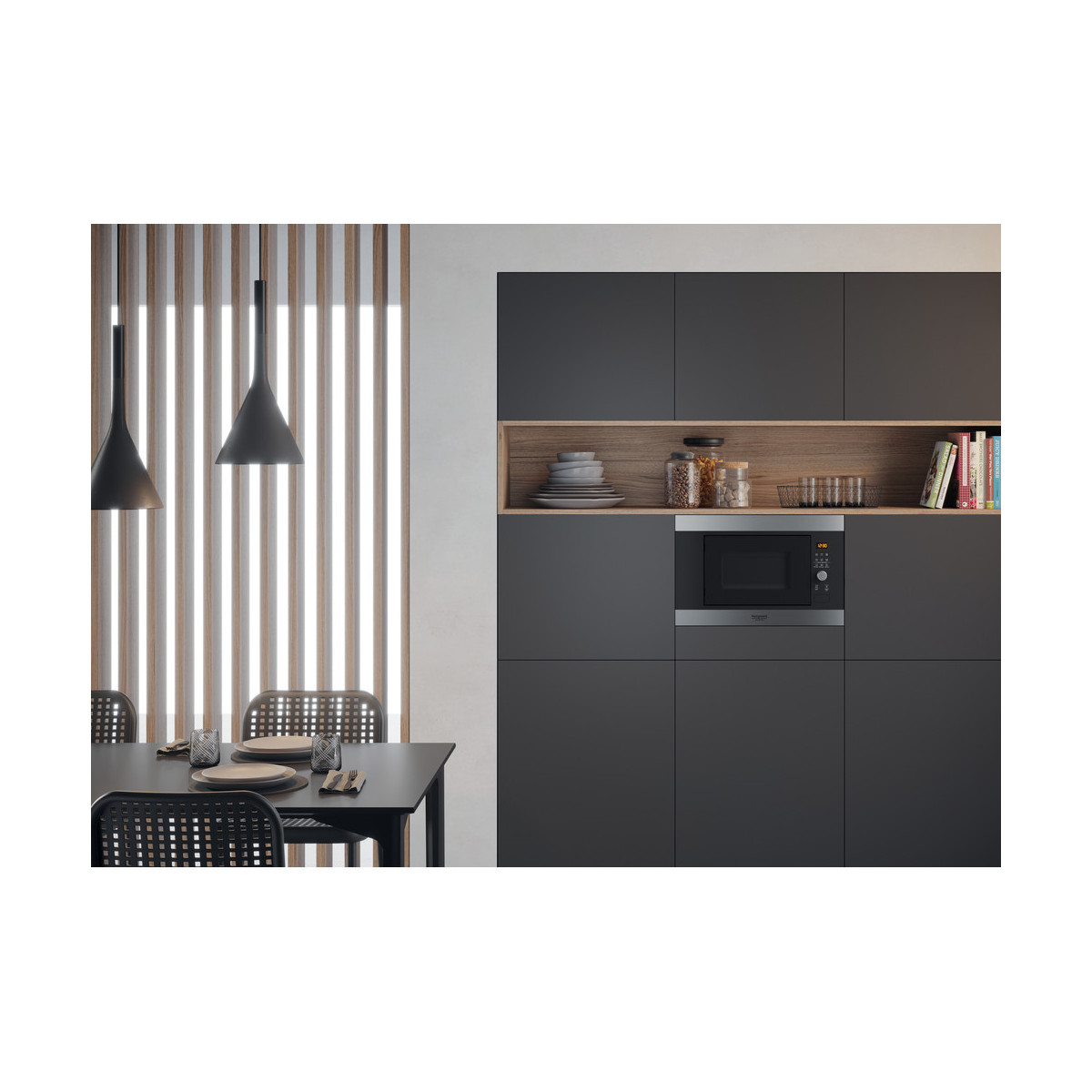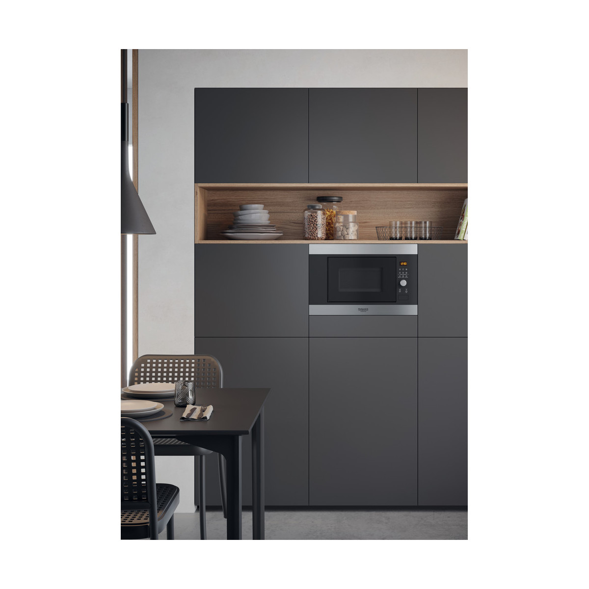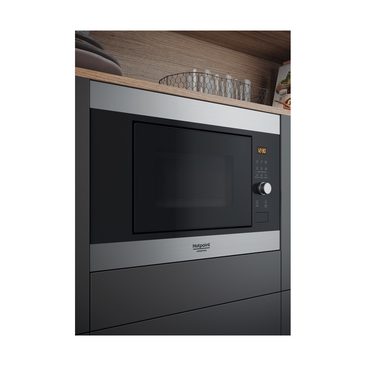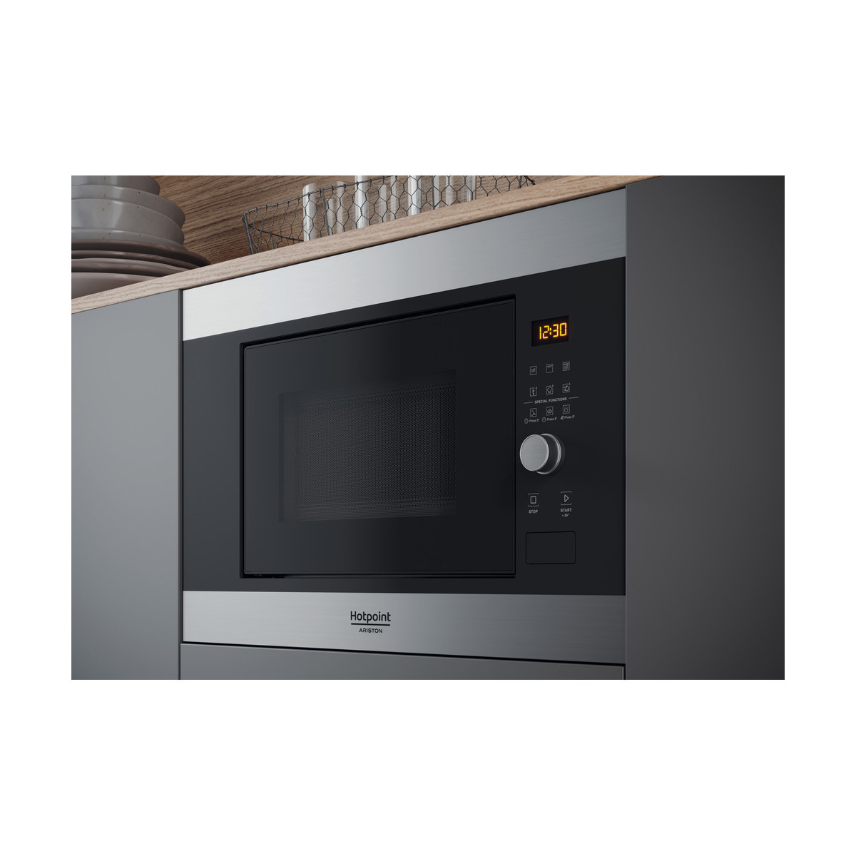 Hotpoint MF20G IX HA. Posizionamento dell'apparecchio: Da incasso, Tipo di prodotto: Microonde con grill, Capacità interna: 20 L. Tensione di ingresso AC: 230-240 V, Frequenza di ingresso AC: 50 Hz, Corrente: 12 A. Larghezza: 594 mm, Profondità: 349 mm, Altezza: 390 mm