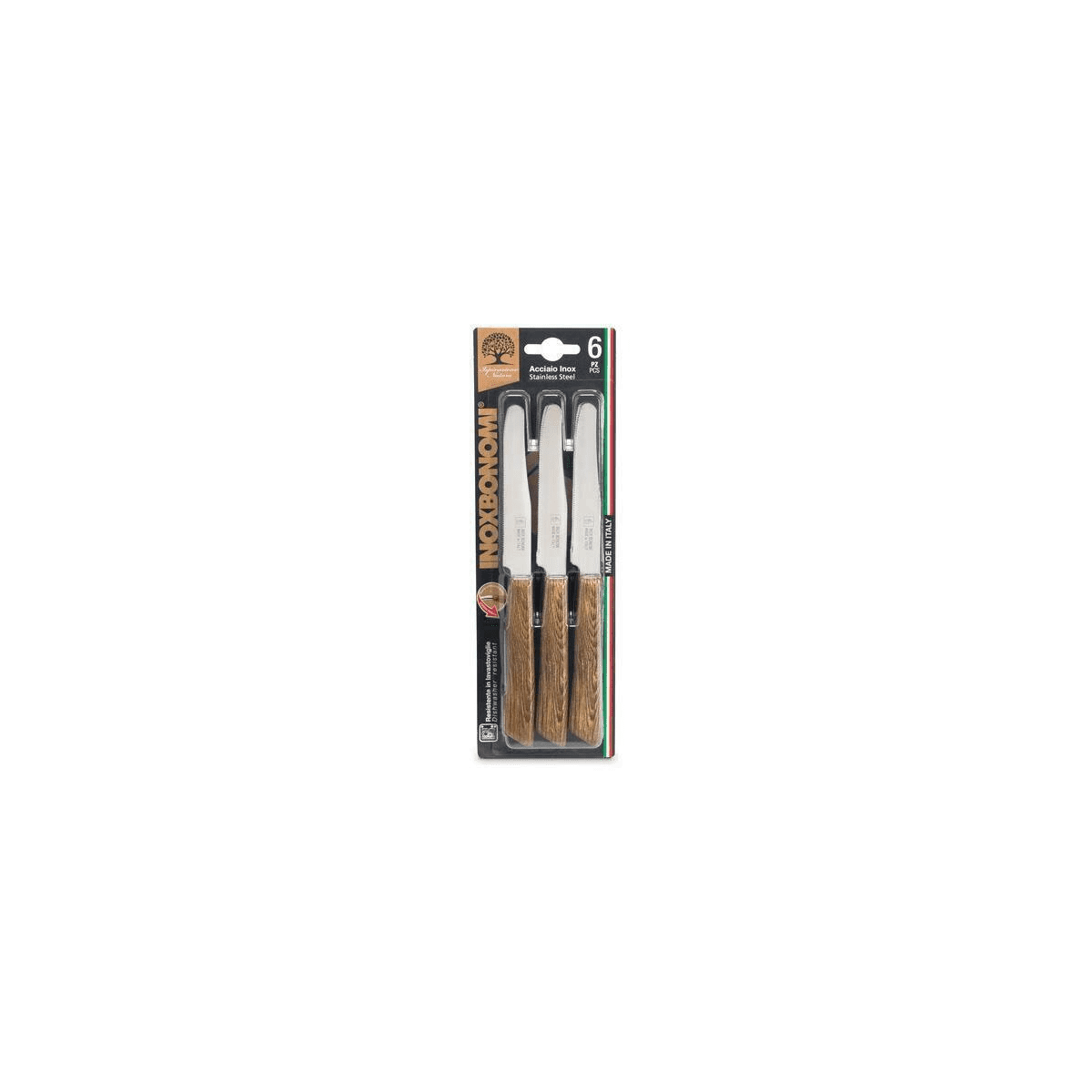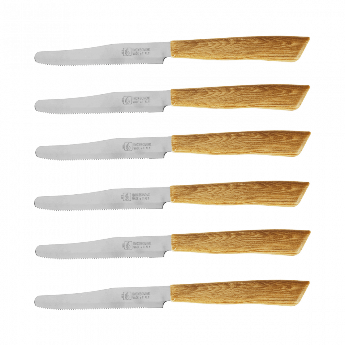 INOXBONOMI, 6 COLTELLI TAVOLA 11CM MANICO COLOR ROVERE