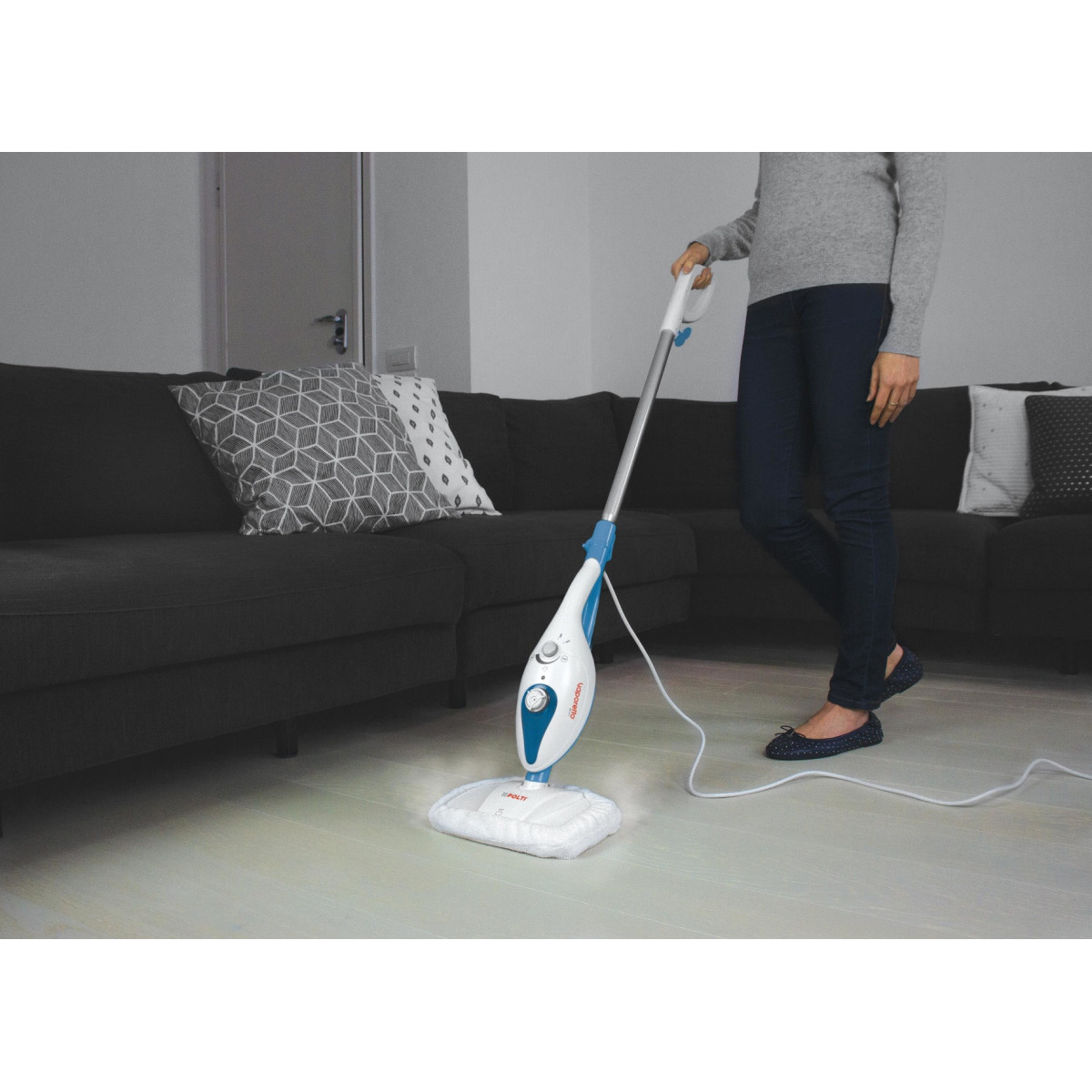 Il vapore regolabile permette di pulire pavimenti differenti, selezionando il giusto grado di vapore per ogni superficie: piastrelle, marmo e parquet verranno puliti in un lampo.