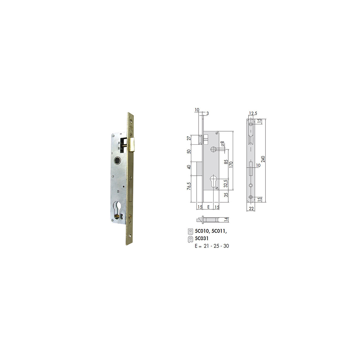 Cisa 5C011.Serratura da infilare, per cilindro europeo, reversibile, 1 mandata, scrocco.