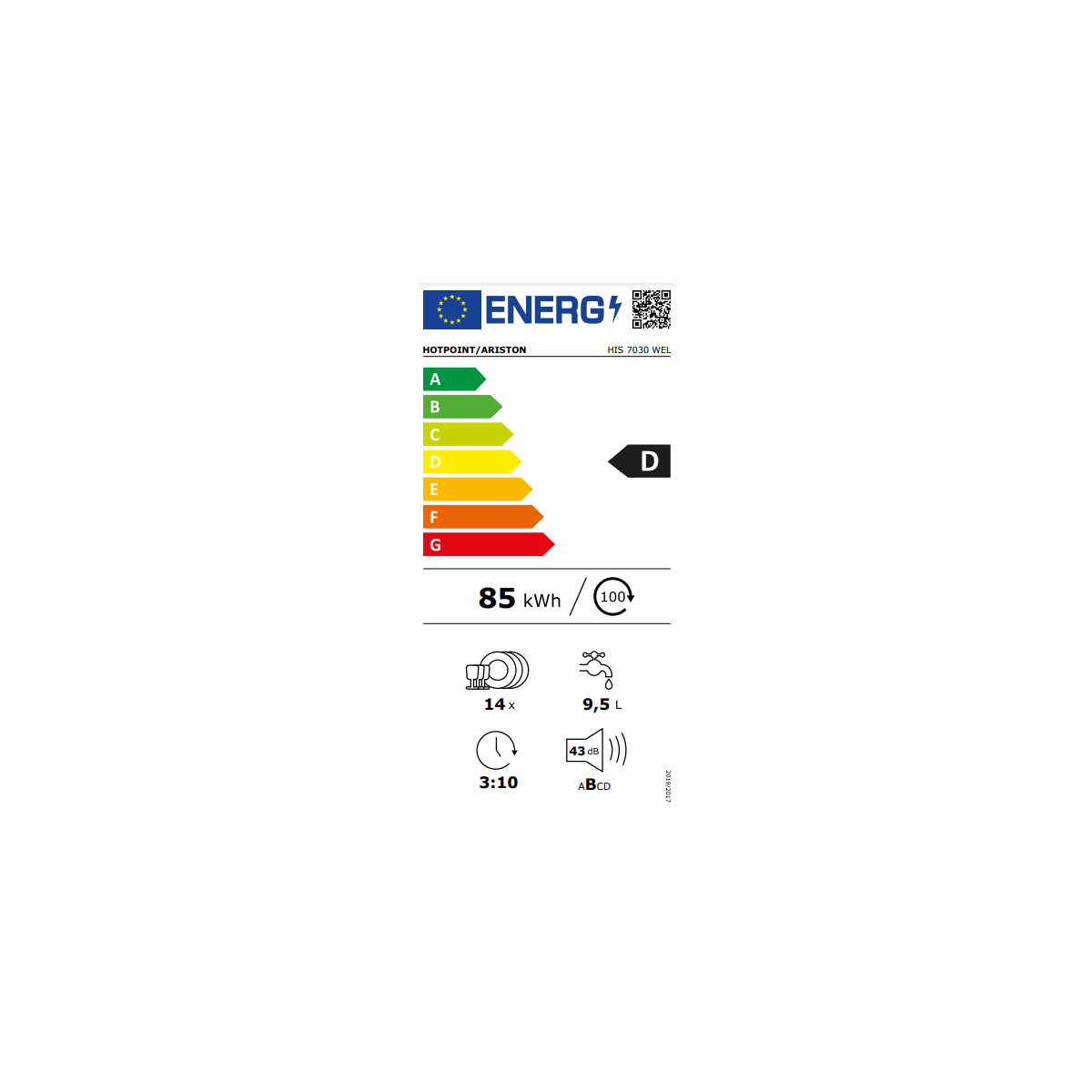 Hotpoint HIS 7030 WEL - Lavastoviglie da Incasso a Scomparsa Totale , 14 Coperti, Classe D