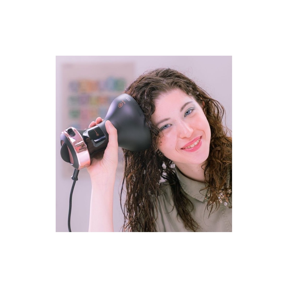 - Curls Booster System: l’azione combinata della particolare griglia forata che distribuisce uniformemente l’aria e delle 12 dita lunghe, che tengono in forma e composti i ricci, permette di asciugare con delicatezza i capelli mantenendo ed esaltando la forma e l’elasticità dei ricci.