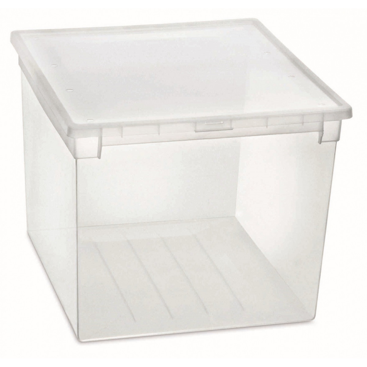 Contenitore multiuso con coperchio, colore trasparente per una facile identificazione del contenuto.